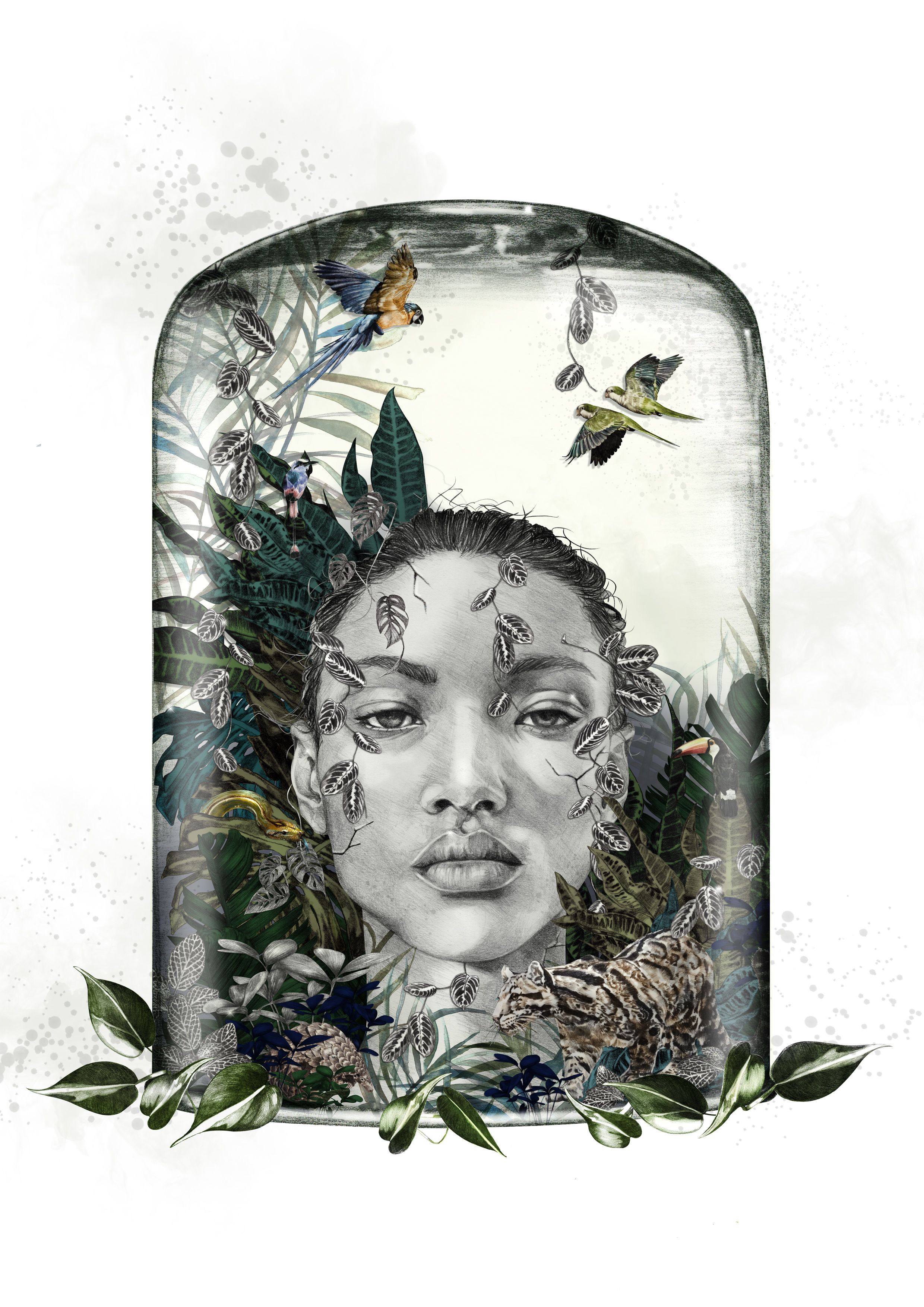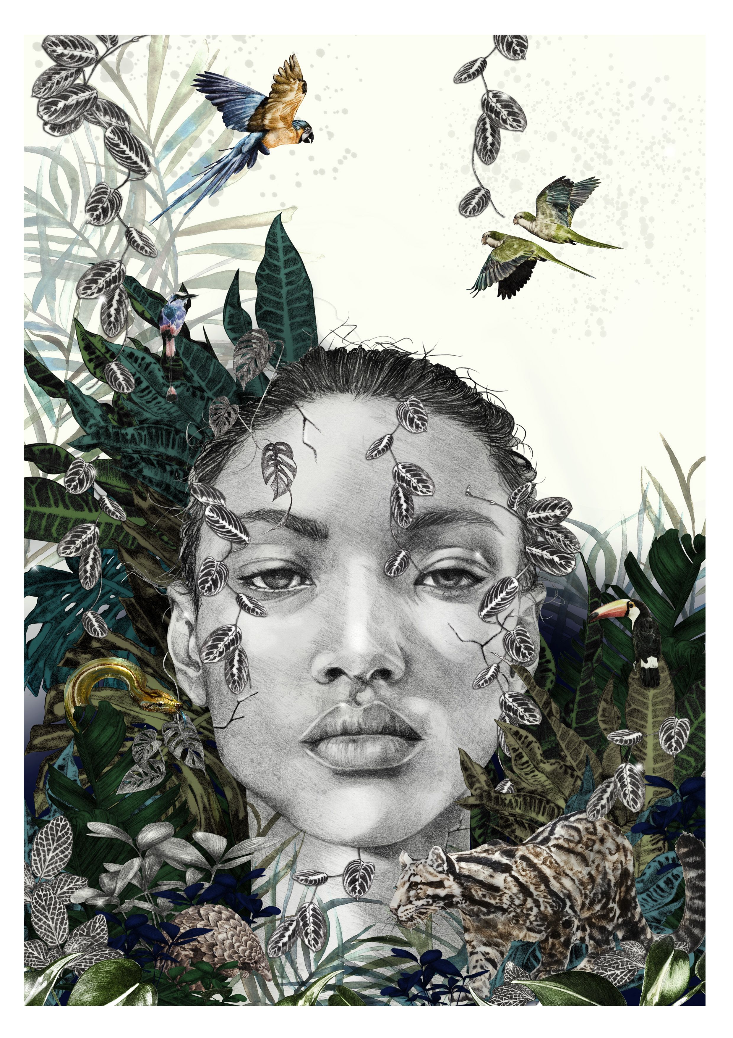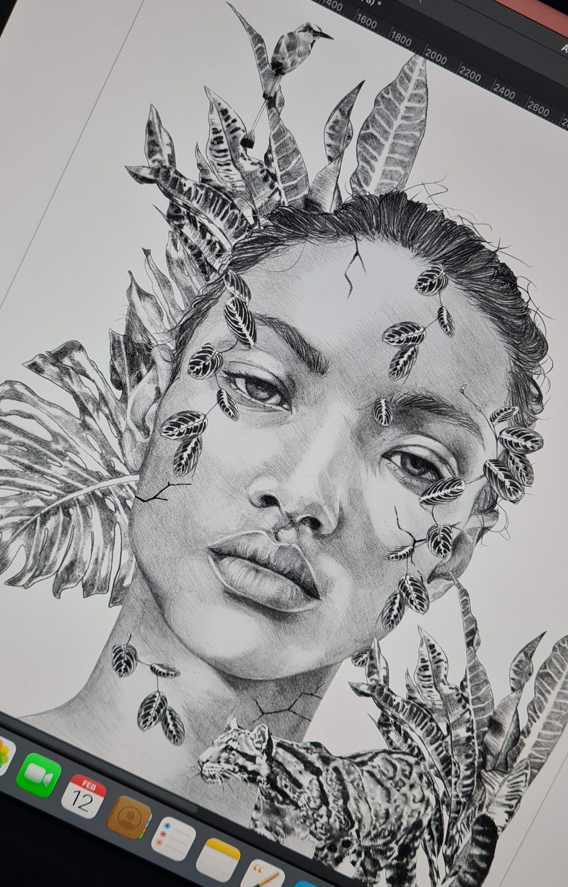 Illustration de portraits avec des techniques traditionnelles et numériques