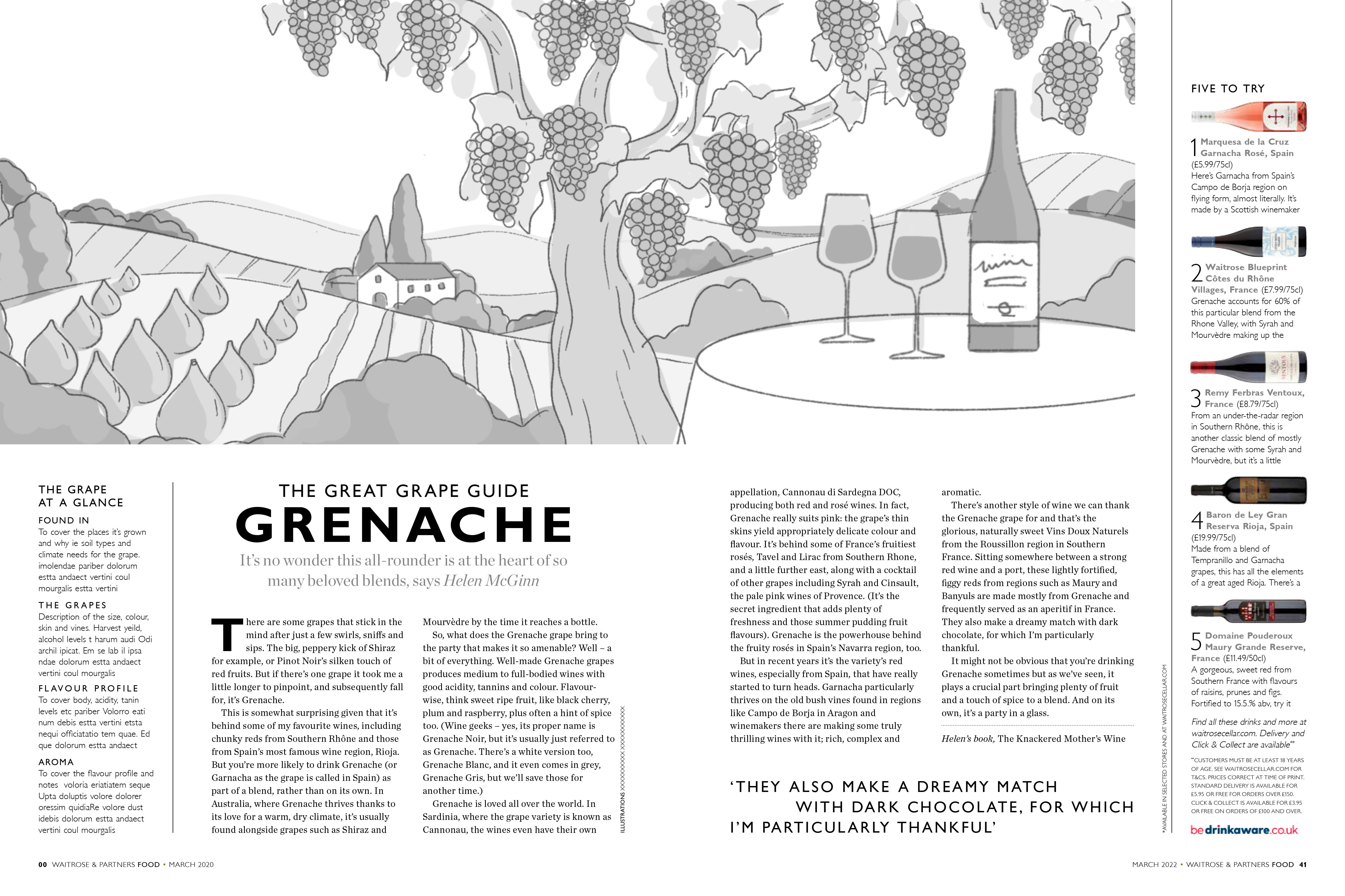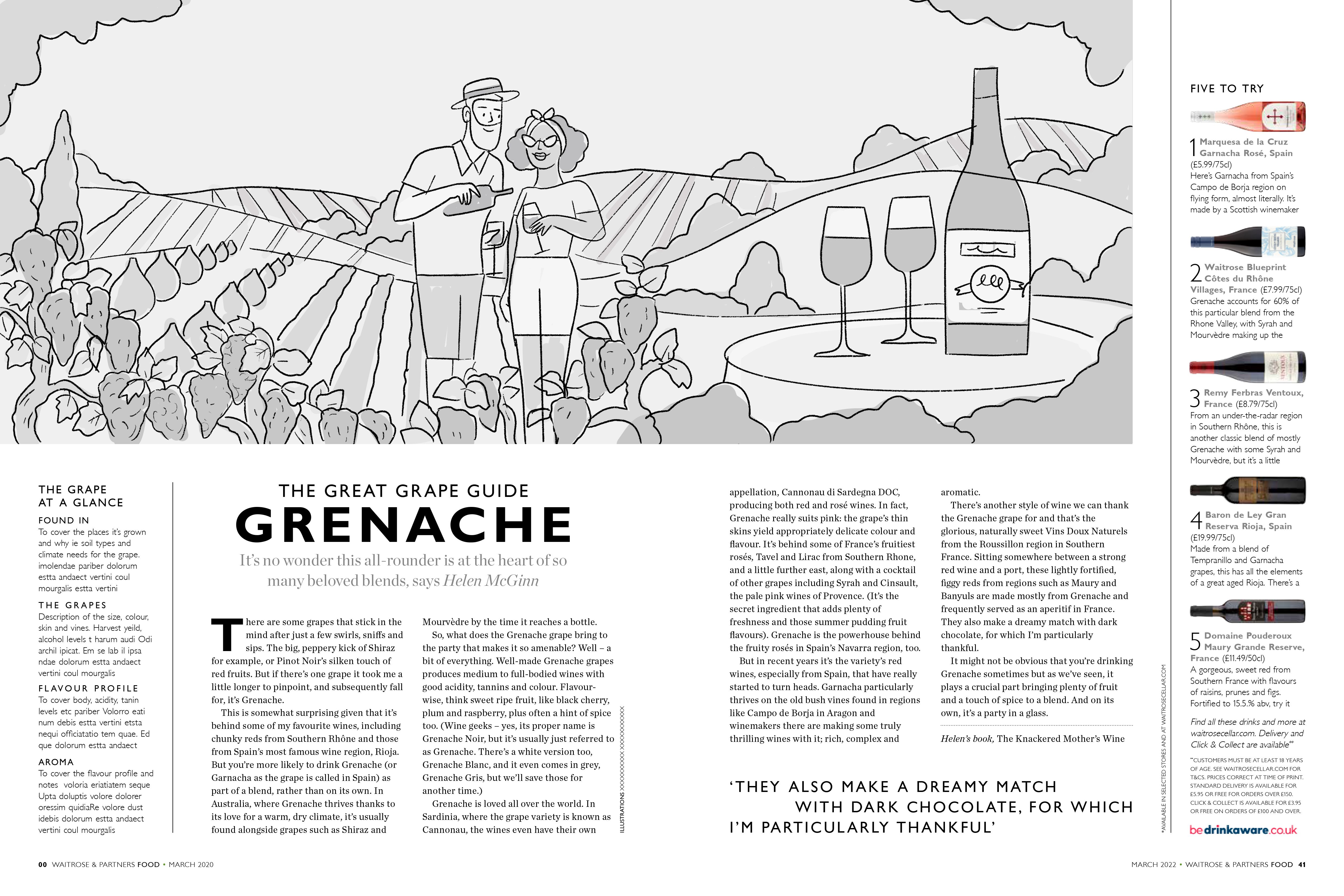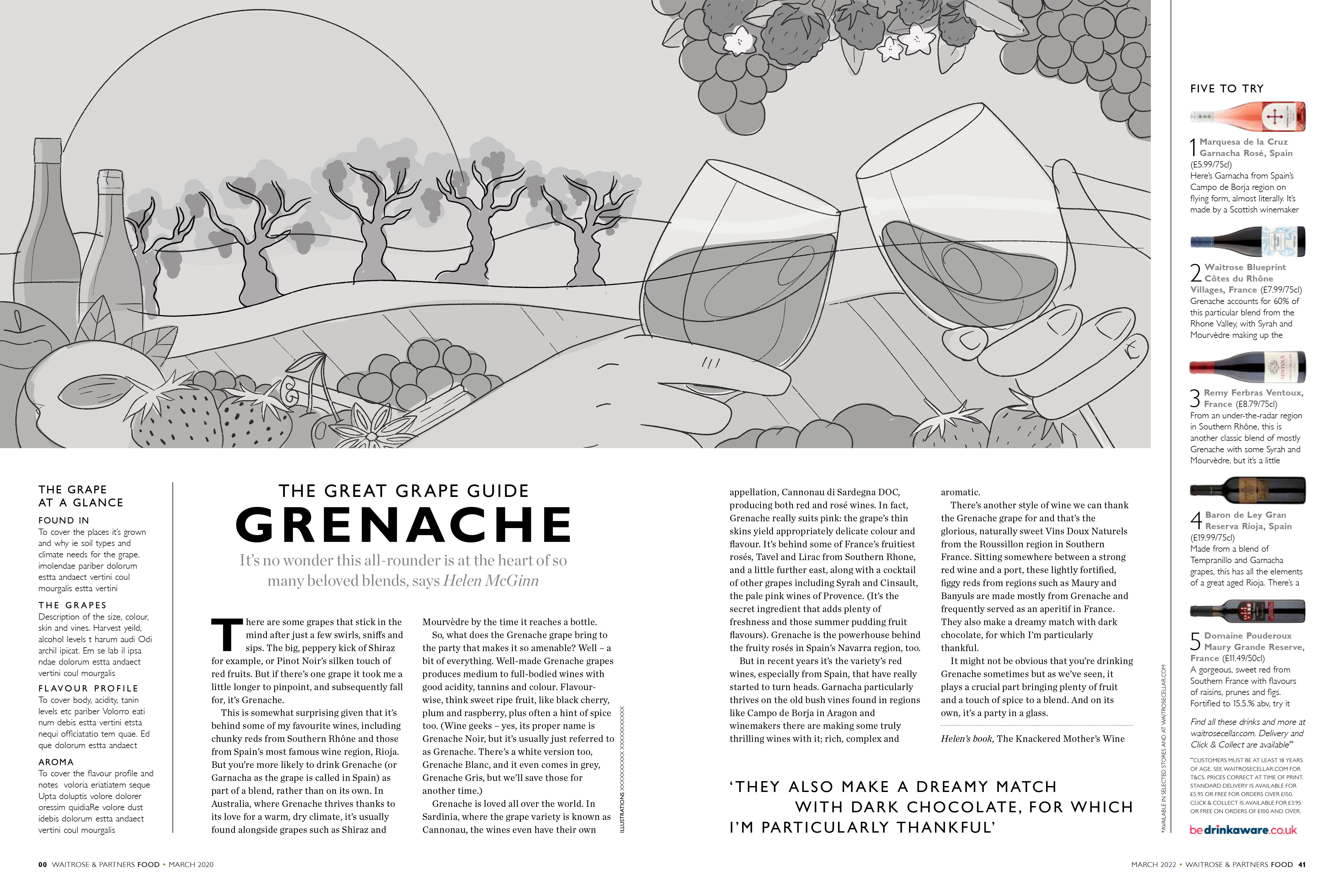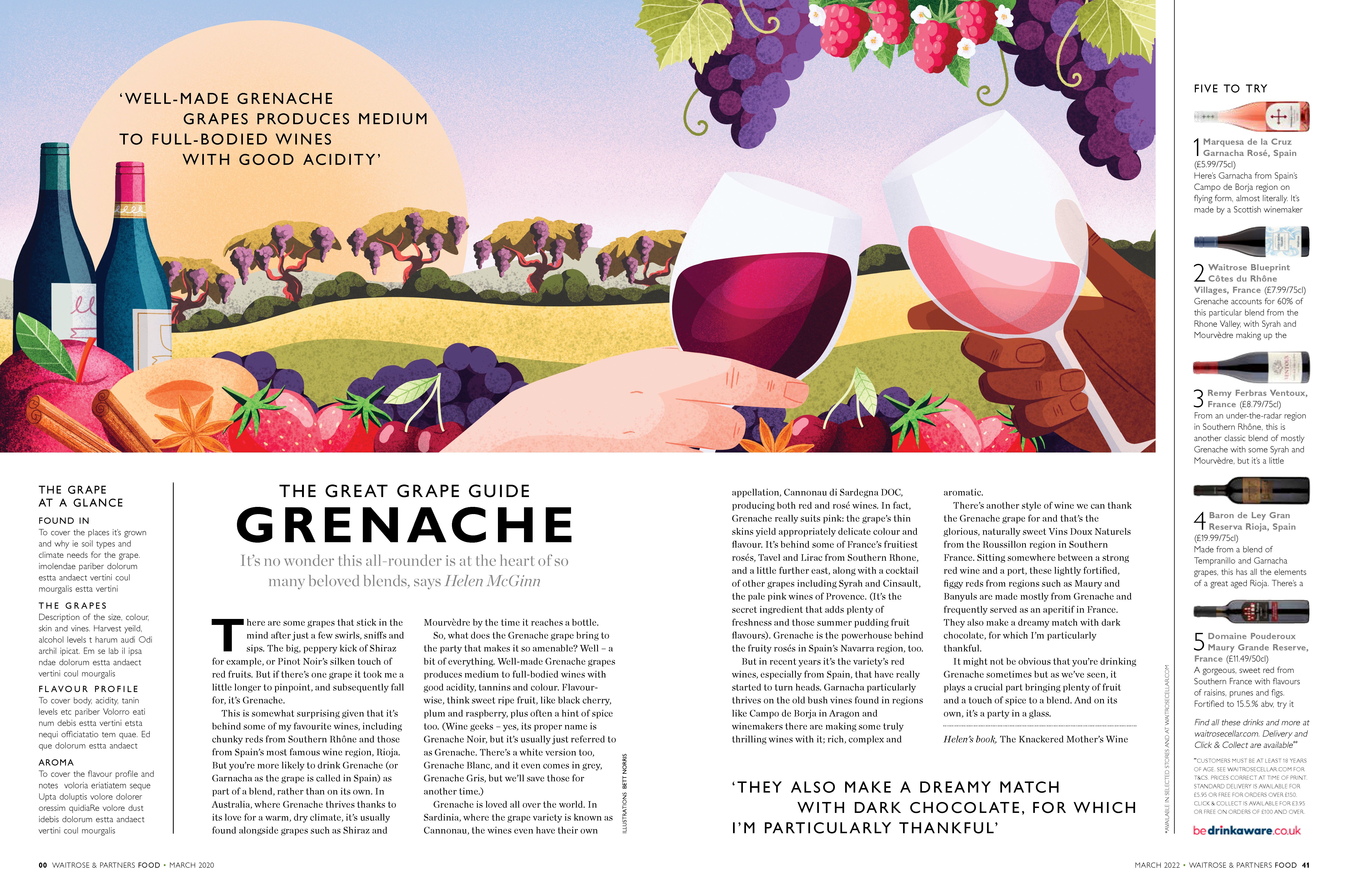 Illustration for a feature about the Grenache grape for Waitrose Food Magazine.