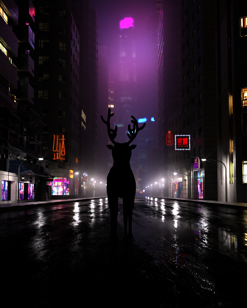 Bon travail! quelques conseils que je peux vous donner sont d'avoir une grande zone de lumière principale au-dessus de votre scène afin que votre scène soit plus lumineuse. Les reflets et les matériaux sont superbes, juste la scène globale semble un peu trop sombre à mon avis personnel. J'adore l'idée avec le cerf ! :)