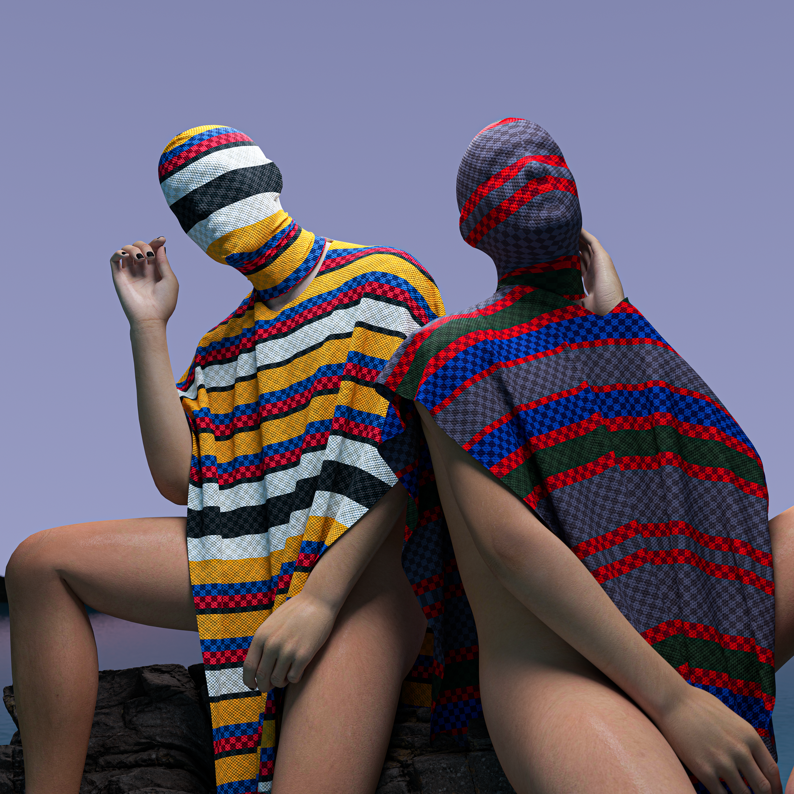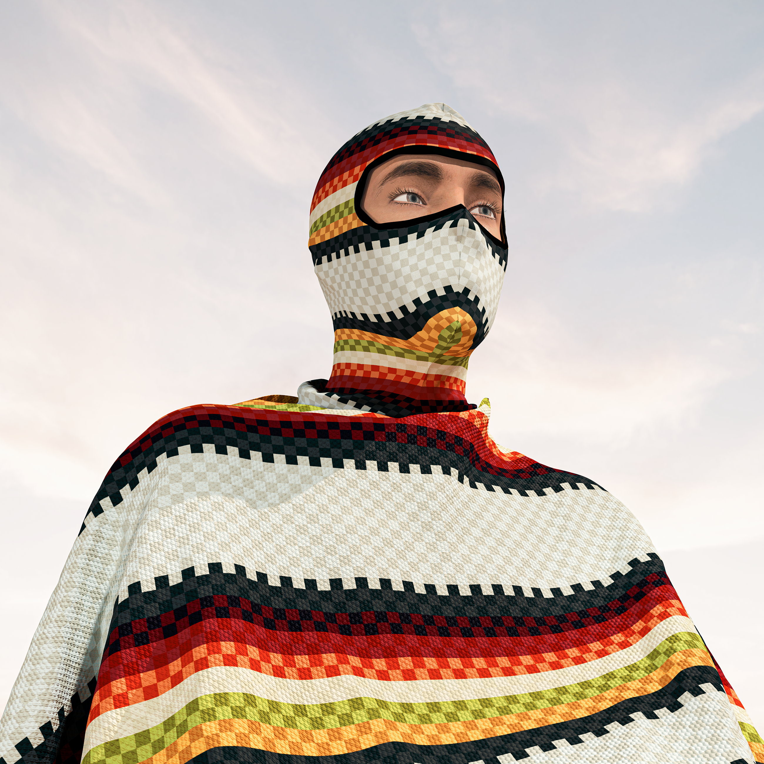 Churana est la traduction de vêtements du quechua vers l'espagnol. Ce projet a permis de collecter des motifs andins, très courants dans la région interandine équatorienne, et de les adapter à un environnement inhabituel, dans un esprit de mode contemporaine. Les motifs ont été créés à partir d'échantillons de tissus, puis transférés sur Illustrator afin de créer la texture dans Substance Designer. Grâce à Cinema 4D et à la postproduction sur Photoshop, nous avons obtenu ces résultats.