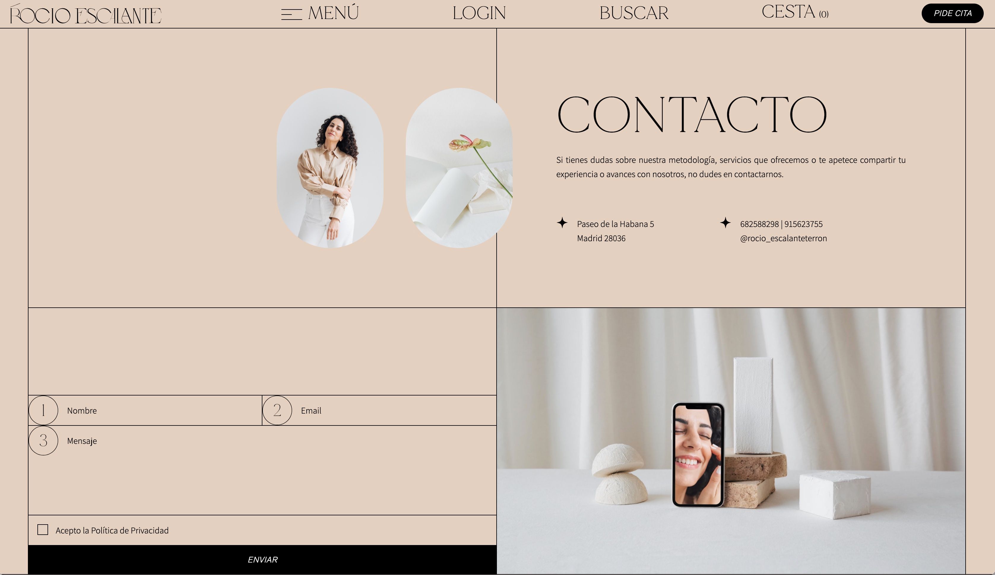 Rocío Escalante es farmacéutica y nutricionista especializada en el cuidado de la piel 😶🌫️ Diseñar su web fue un pedazo de reto, porque en ella tenía que haber espacio tanto para sus servicios, como para los productos que vende.
