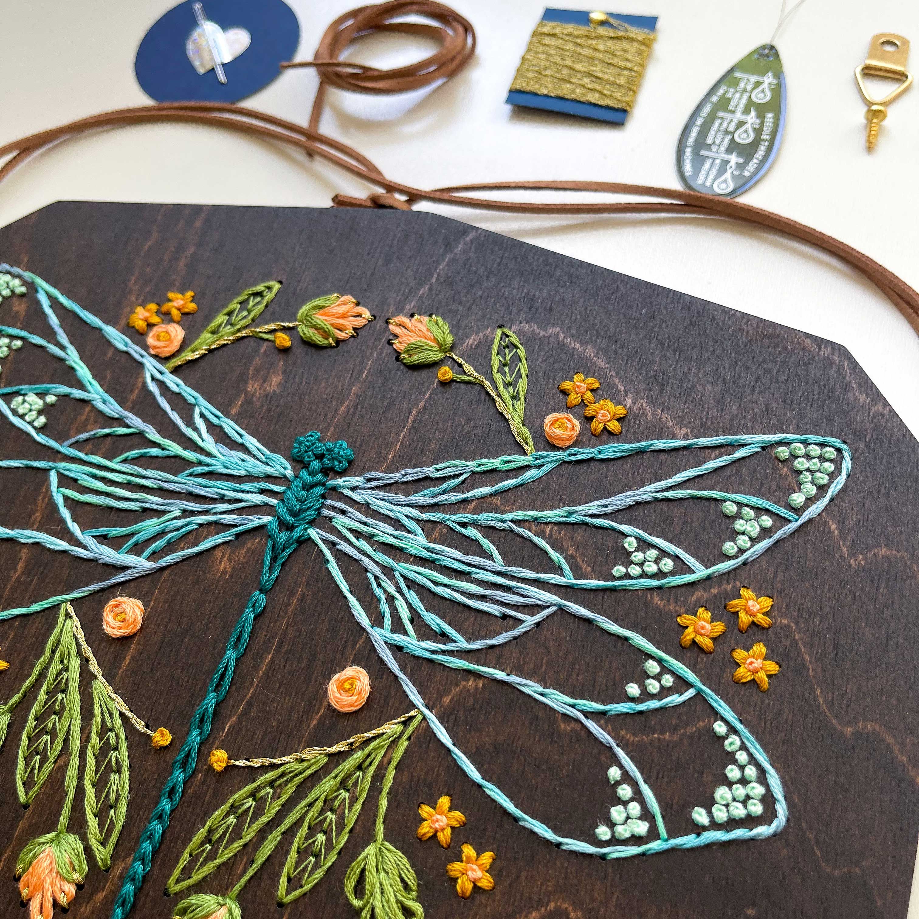 Dragonfly wood embroidery kit.