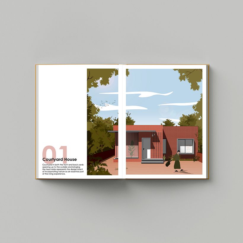 COURTYARD HOUSE est un projet personnel. Il s'agit d'une résidence de luxe d'une chambre. La cour, à l'avant comme à l'arrière, s'ouvre sur l'extérieur et laisse entrer l'arbre à l'intérieur. Elle reflète la volonté de conception d'intégrer la nature comme élément essentiel de l'habitat. L'utilisation de briques apparentes en façade lui confère un aspect plus naturel.