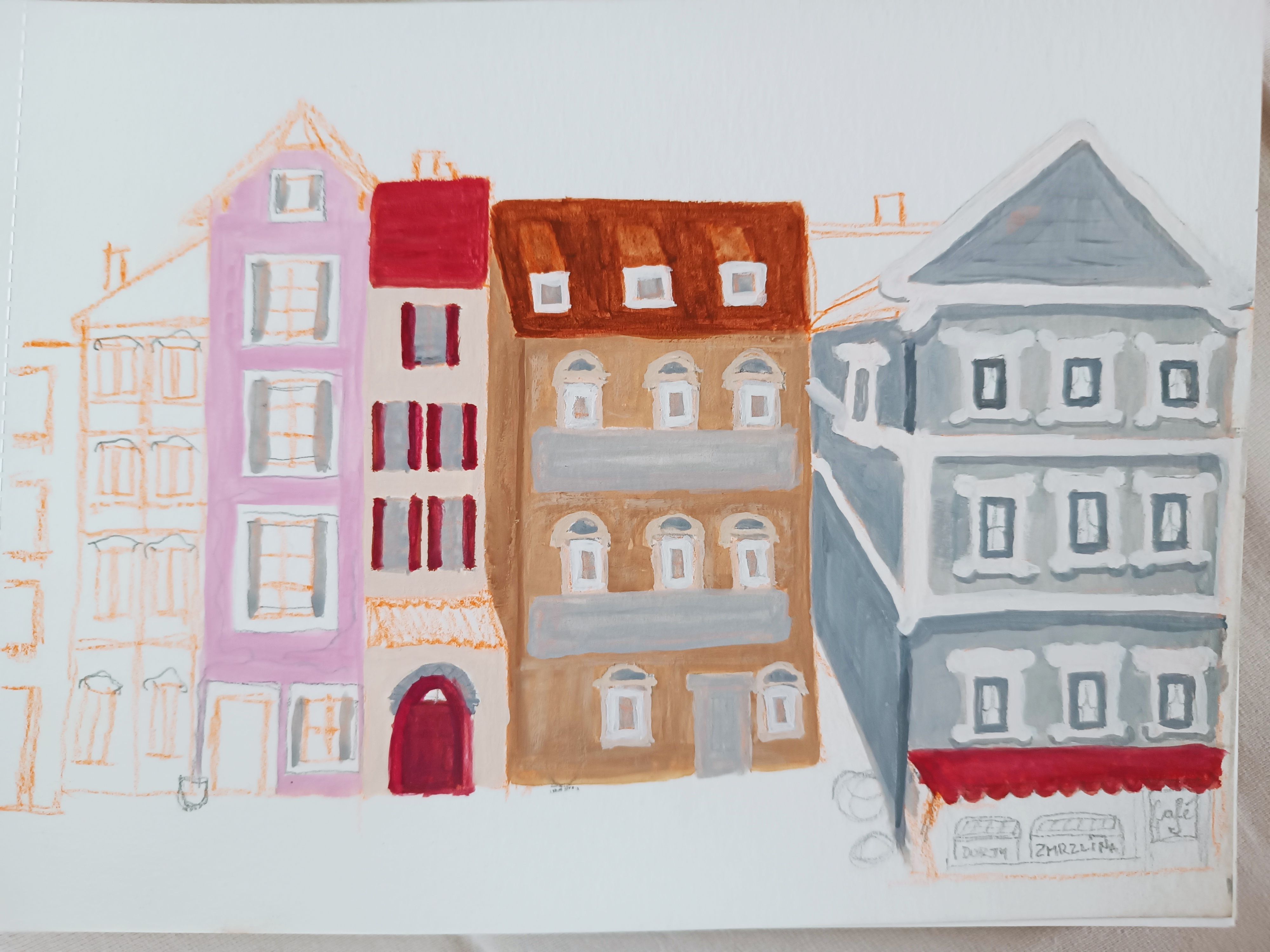 Chère Emma, merci pour ton commentaire, tu as raison, j'ai utilisé trop d'eau car j'ai commencé à peindre quelques mois auparavant à l'aquarelle et c'était ma première peinture à la gouache. Mais j'ai hâte de continuer à peindre à la gouache. Merci pour votre excellent cours!