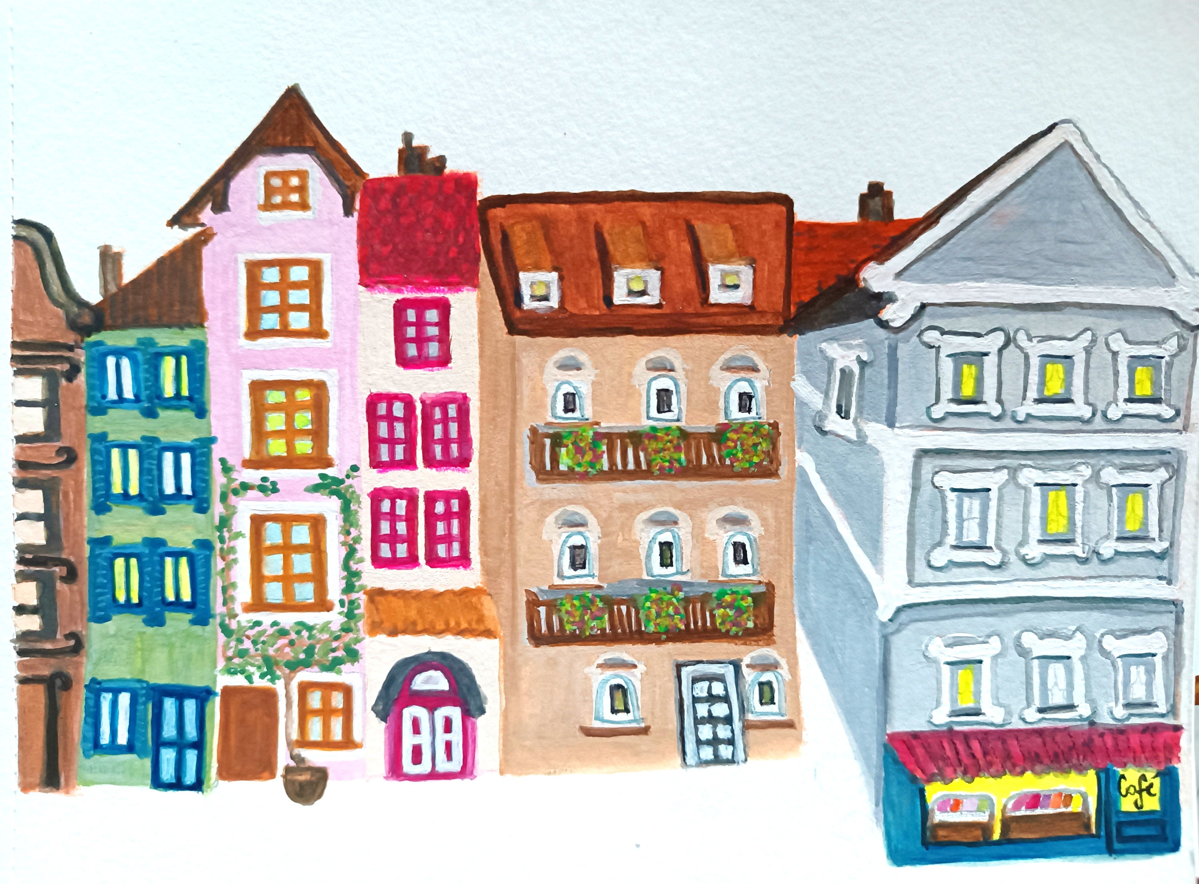 Merci beaucoup pour le partage de votre dernière pièce, c'est tellement charmant! Je me demande si cela a été peint avec de la gouache ou des aquarelles, cela ressemble à des aquarelles mais peut-être avez-vous simplement ajouté trop d'eau pour faire votre gouache. Je regarderais la consistance de votre peinture, en particulier là où vous avez peint l'arbre, il semble très humide. J'espère que vous avez apprécié le cours et que vous continuez à peindre !