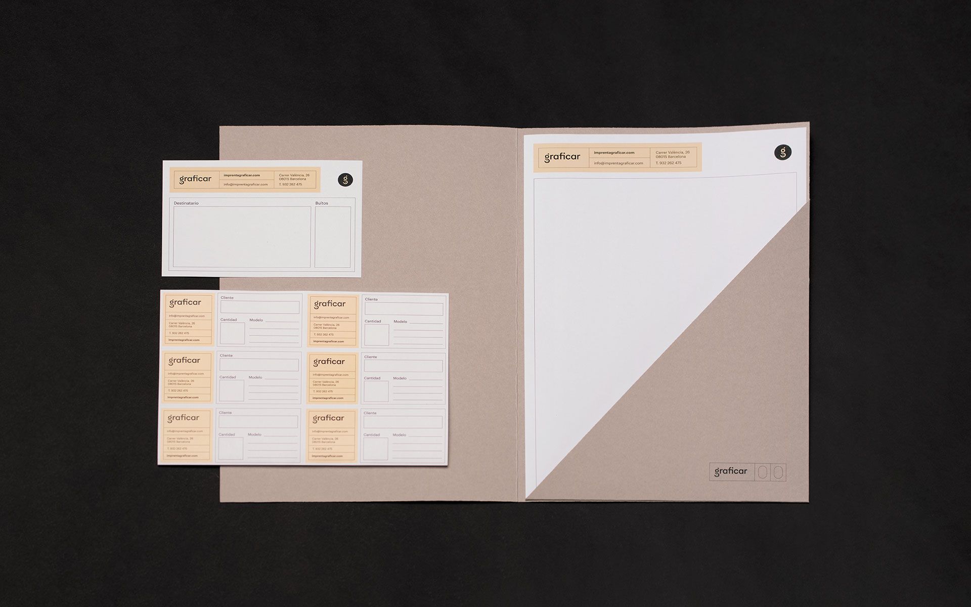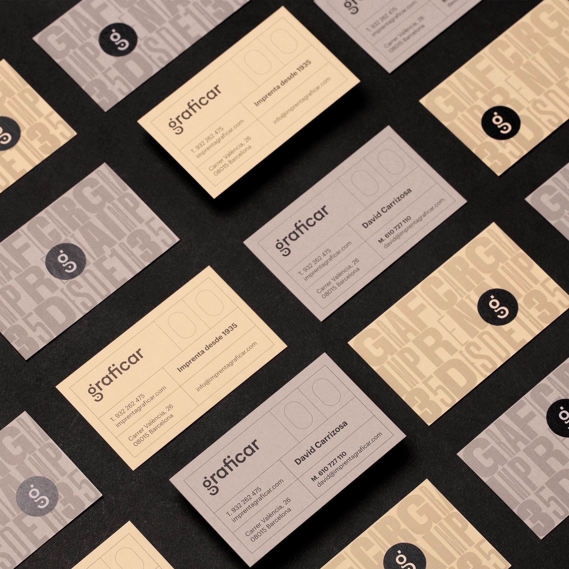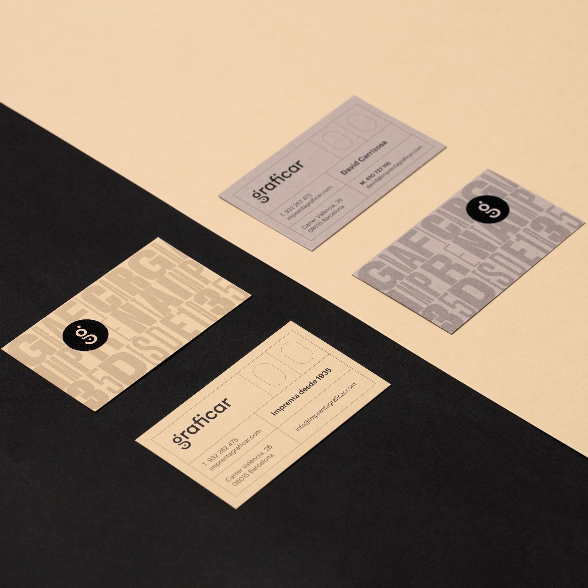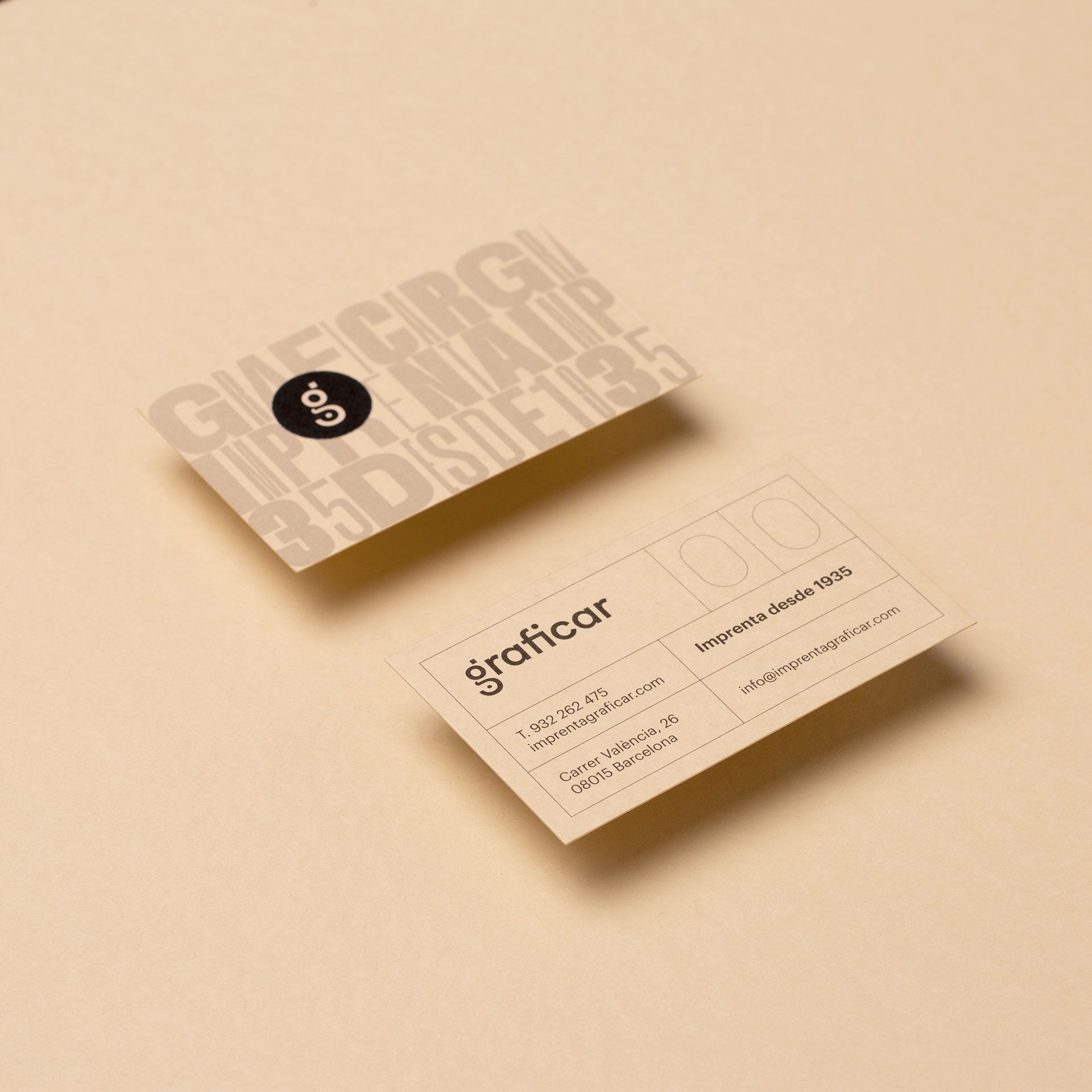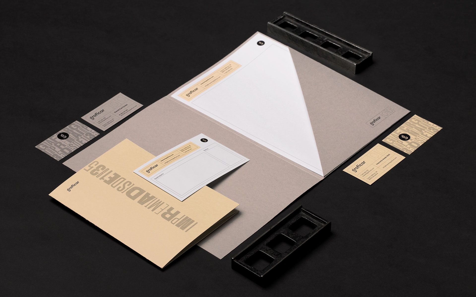 El sistema gráfico comunica la calidez y tradición de un negocio con casi 90 años de trayectoria. Se utilizan los objetos tradicionales de la impresión para dar carácter y personalidad a la identidad. Esa calidez se integra perfectamente con un logotipo y símbolo que reflejan la actualidad de la imprenta, la impresión offset. Partiendo de su inicial y jugando con la geometría, se crea el símbolo y se integra con el logotipo. El resultado final es una marca que refleja la tradición y modernidad de Graficar.