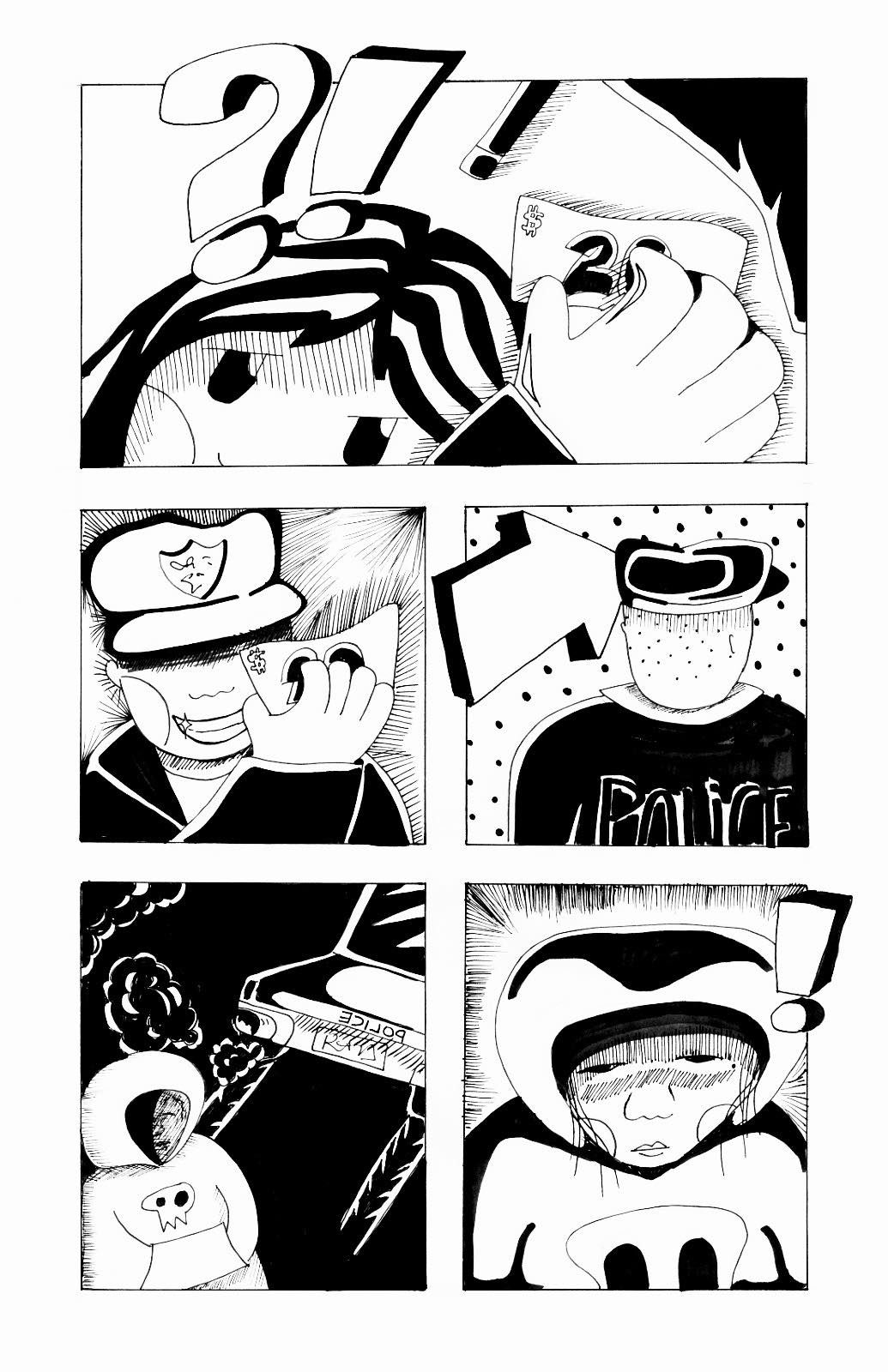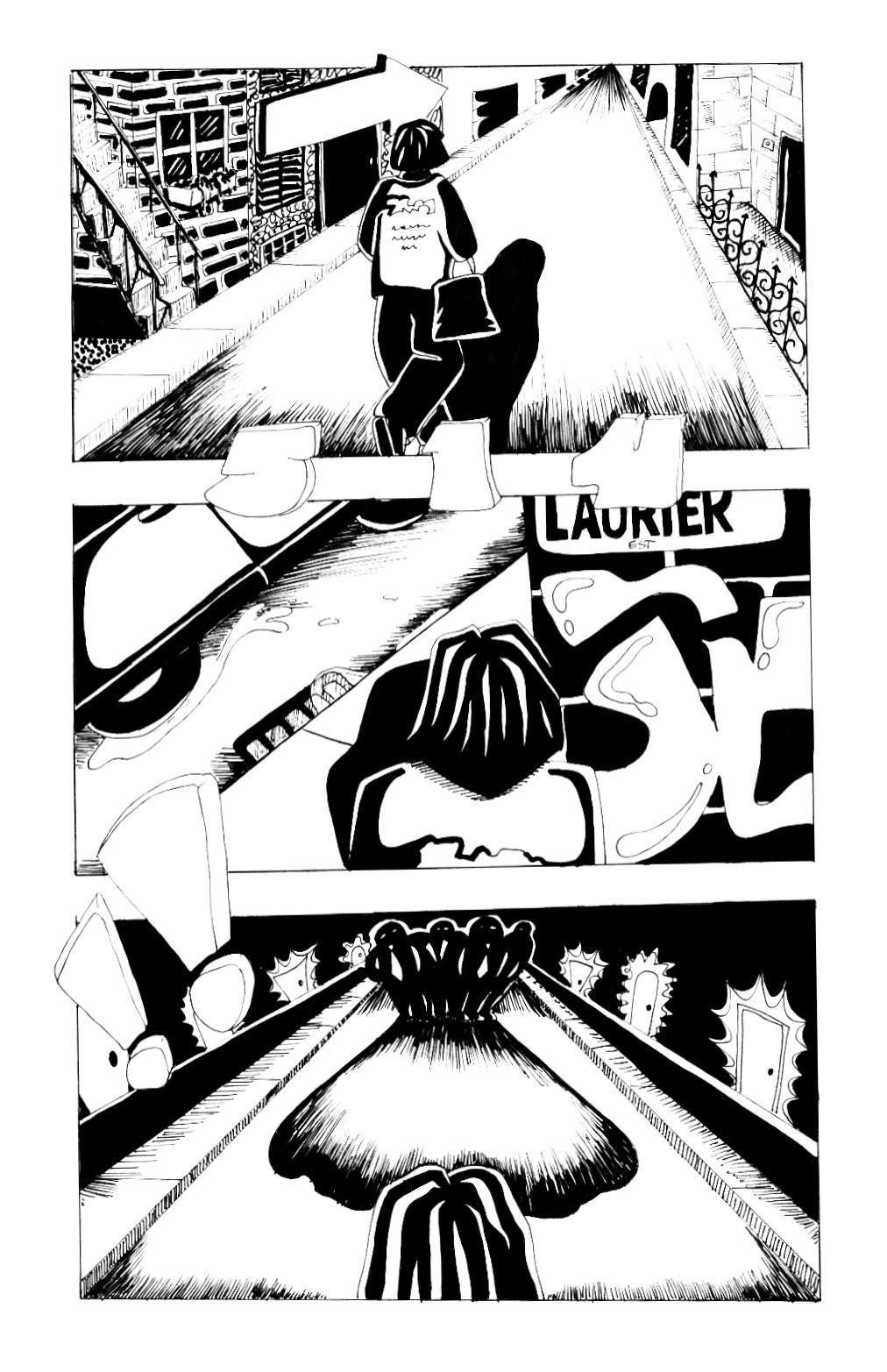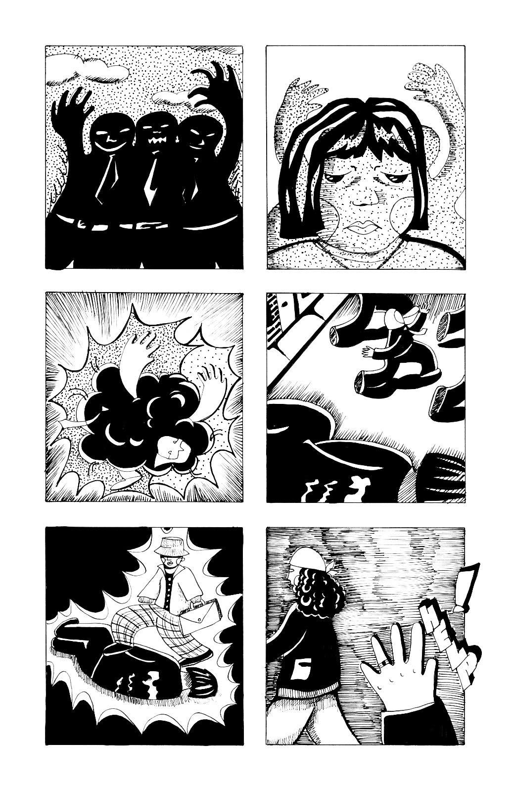 Style graphique très audacieux. Des noirs lourds et des textures intéressantes. Vos mises en page sont belles mais peuvent parfois être un peu déroutantes, par exemple lorsque des éléments se croisent dans des panneaux voisins. À la page 3, par exemple, le personnage est-il debout ou couché ? Je pensais qu'ils étaient debout, mais lorsque le policier tend la main pour récupérer l'argent, ils semblent à nouveau allongés. Cela me rappelle beaucoup certaines bandes dessinées expérimentales des années 70, dans le bon sens du terme ! Bien joué!