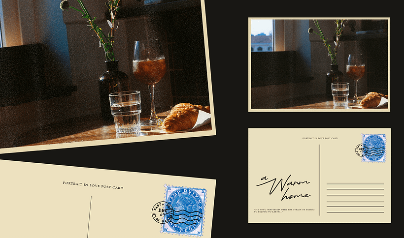 eng. portrait in love is a collection of nostalgic postcards representing a selection of songs from the album "portrait in love" by rook1e and softy. the album belongs to the musical genre "lo-fi," known for its evocation of positive emotions, relaxation, and nostalgia. each photograph assigned to a title seeks to represent not only its literal meaning but also the essence of the melody and musical language of each song. the project is based on a completely vintage style, using color photographs that share characteristics of yearning, love, homely solitude, and melancholy.