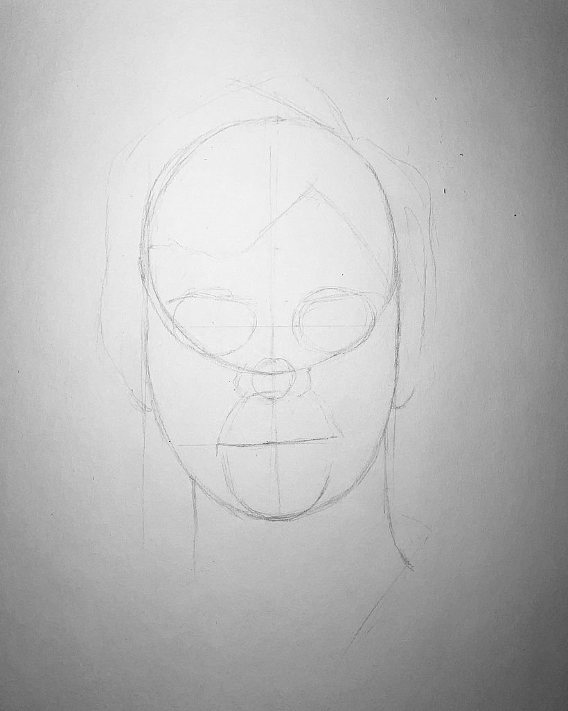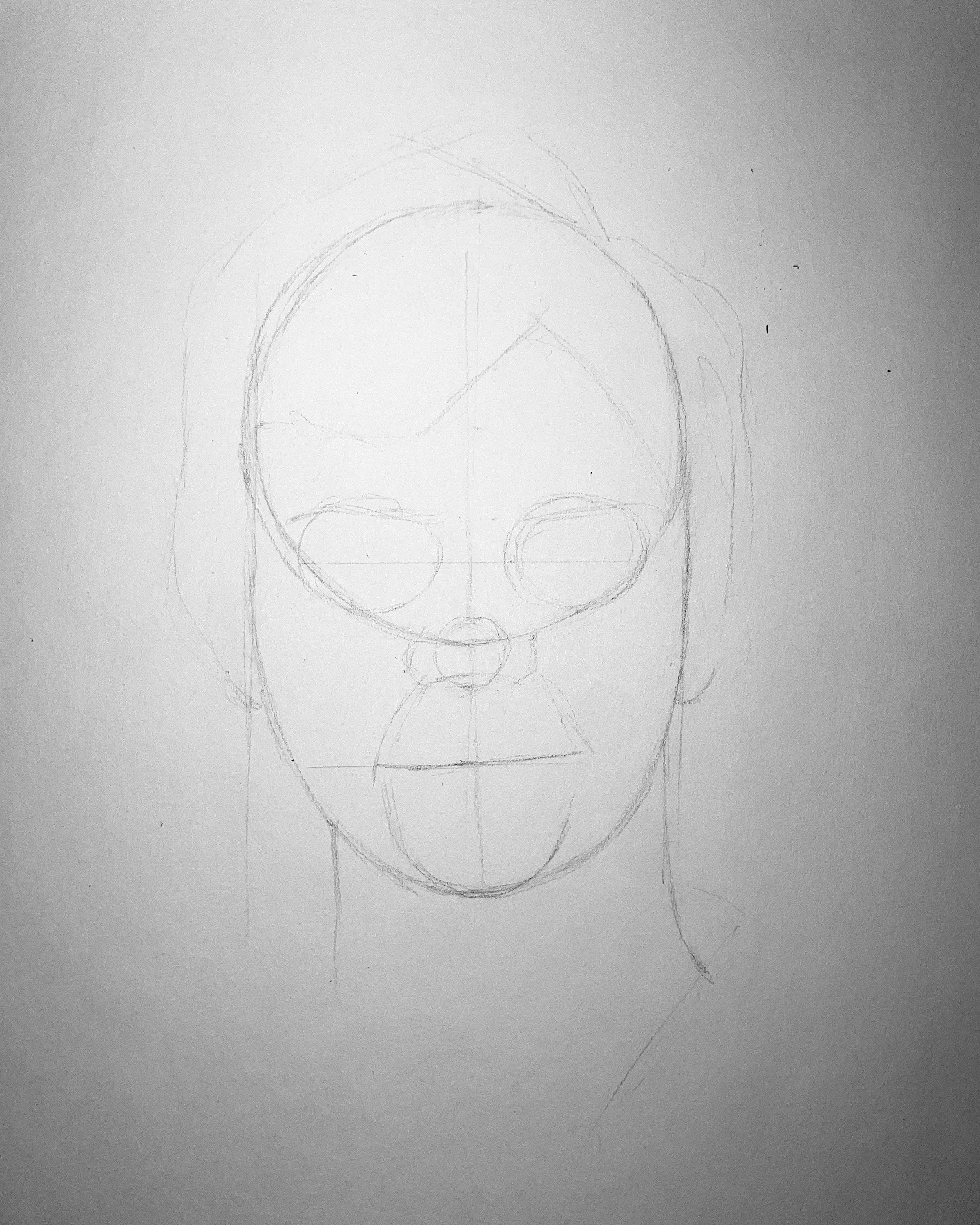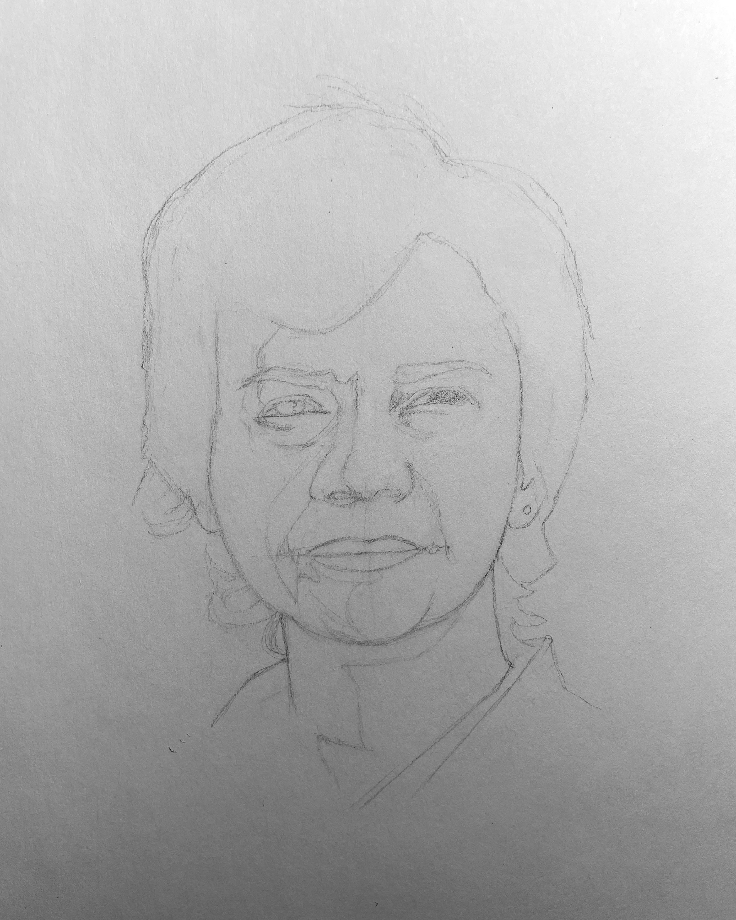 This is the final drawing with corrections and added detail, particularly around the eyes, nose, and mouth.