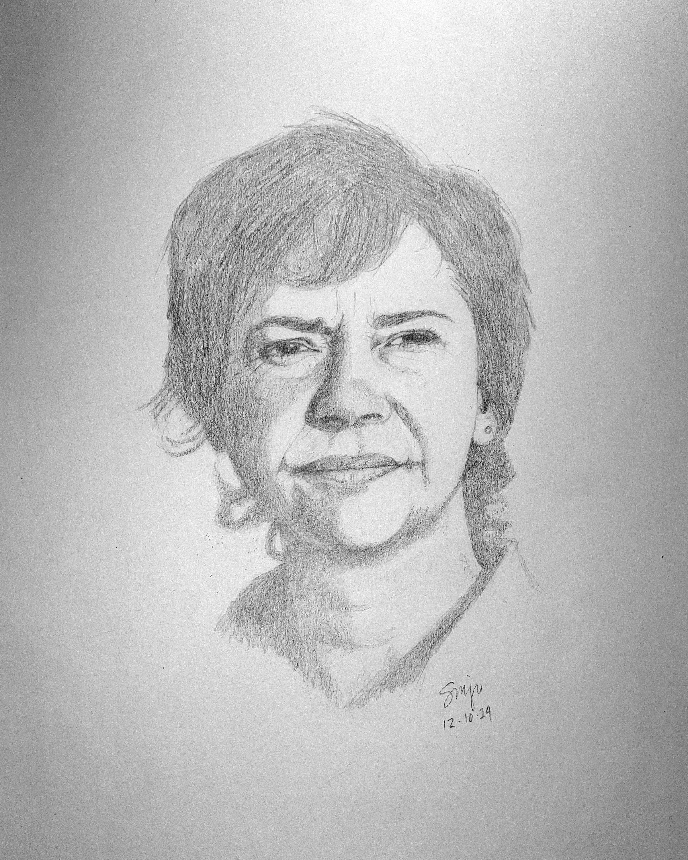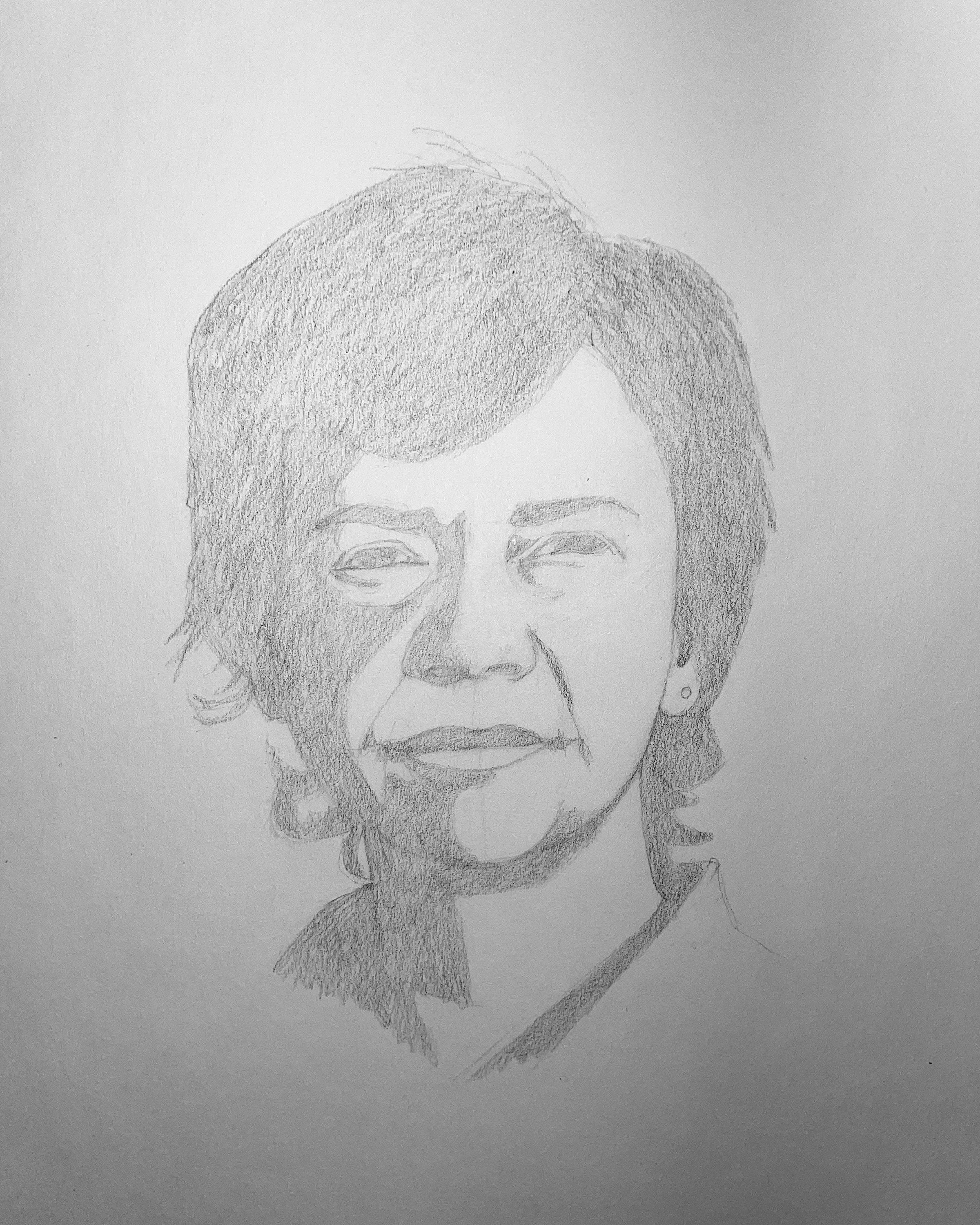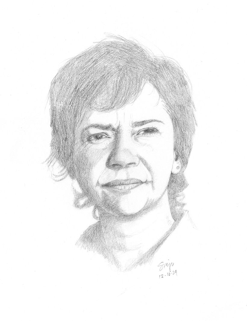 This is a portrait drawn with graphite pencil using a black and white photo reference.