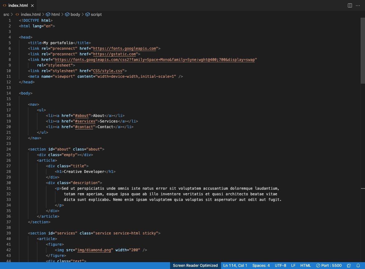 Descargamos y creamos una hoja de trabajo en HTML utilizando Visual Studio Code, exploramos en detalle la estructura del documento HTML y aprendimos cómo usar las etiquetas correctamente.