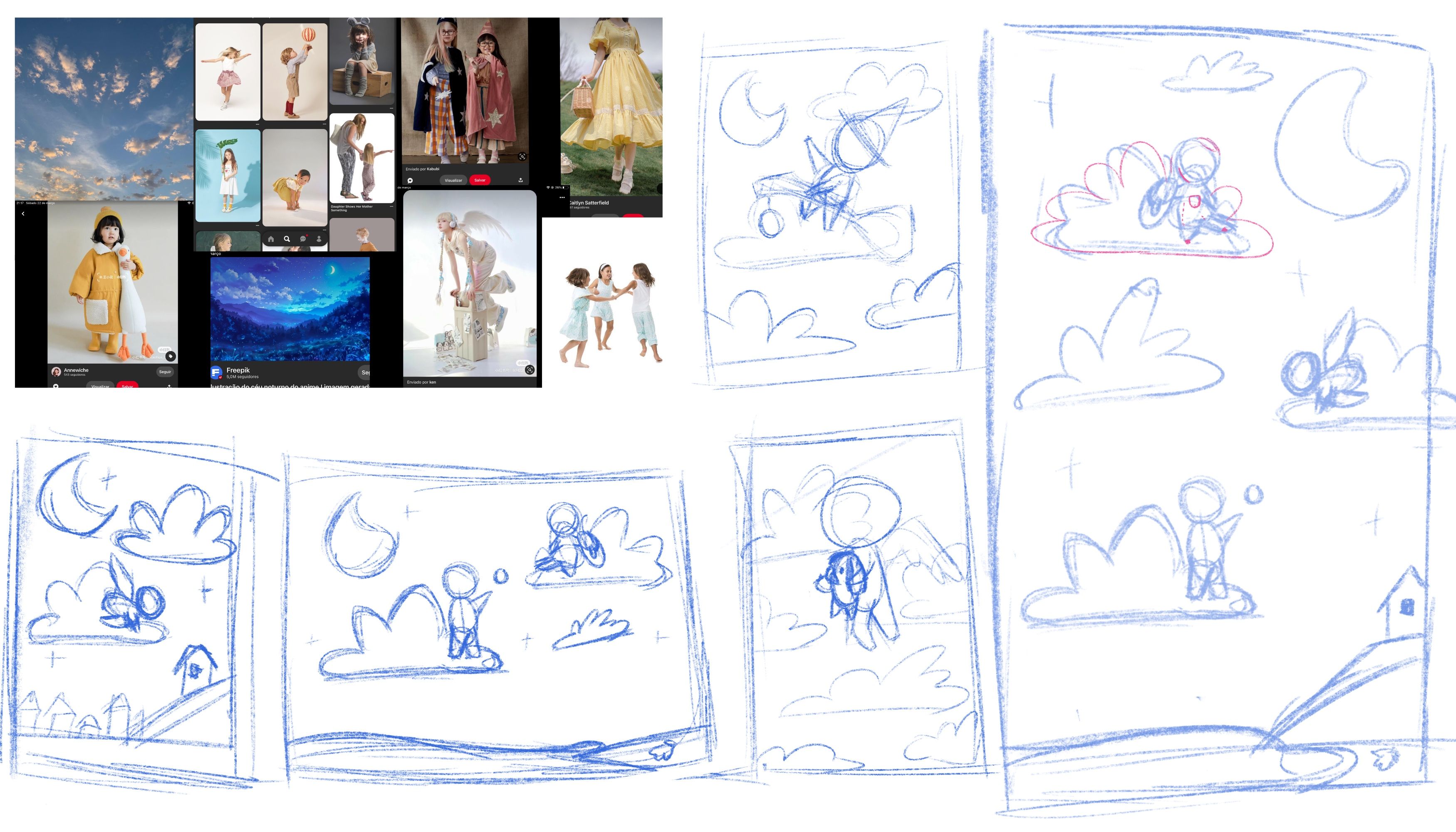 FR : Mon processus créatif commence par la génération d'idées. Je commence par rassembler des références et m'inspirer de différentes sources. Cette phase m'aide à visualiser ce que je veux créer. Ensuite, je passe à l'étape des croquis, où je teste plusieurs idées jusqu'à trouver celle qui me plaît le plus. Ici, je n'ai pas peur d'expérimenter et de laisser libre cours à ma créativité ; c'est un moment d'exploration, où chaque croquis me rapproche de la vision finale.