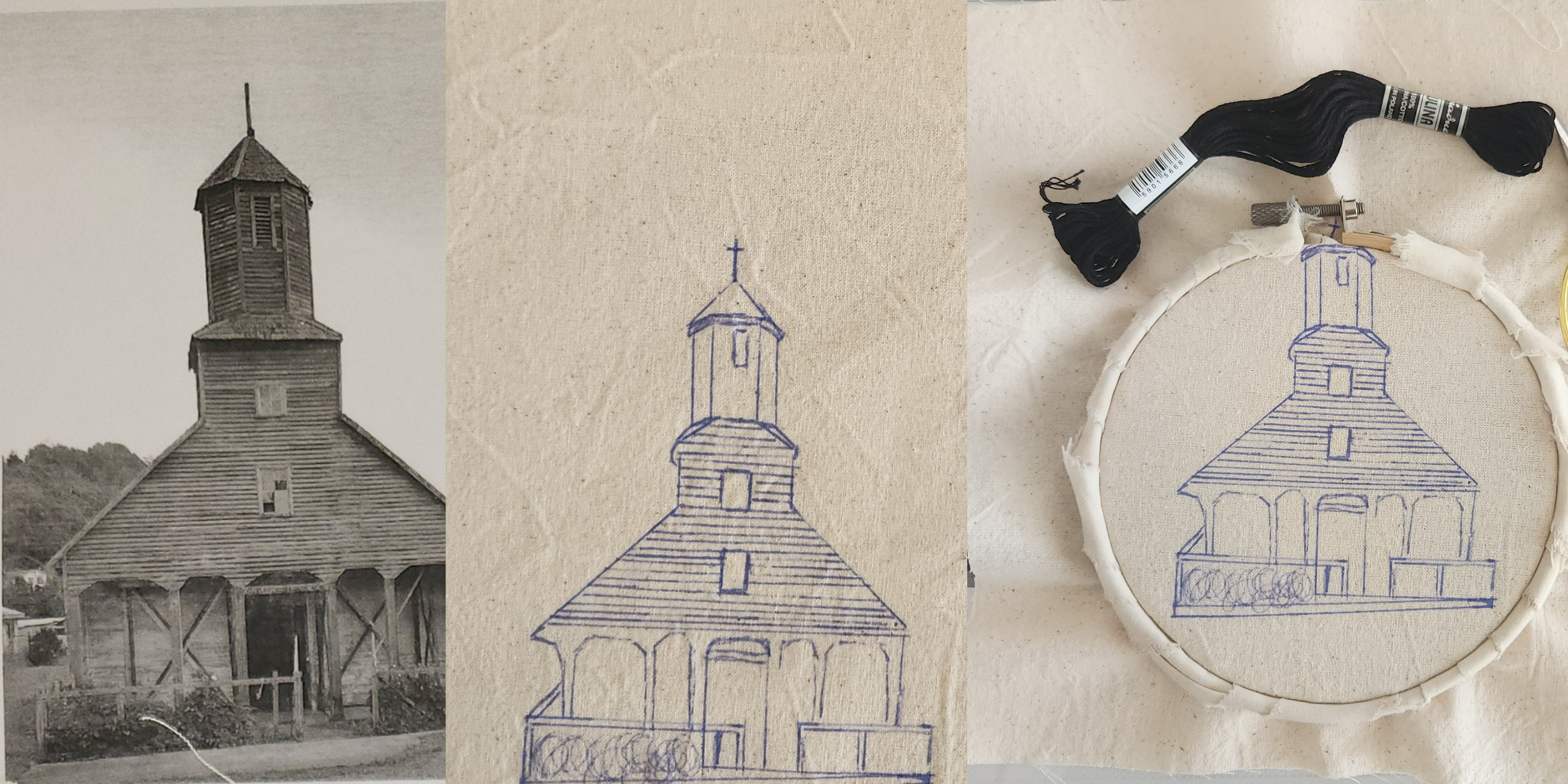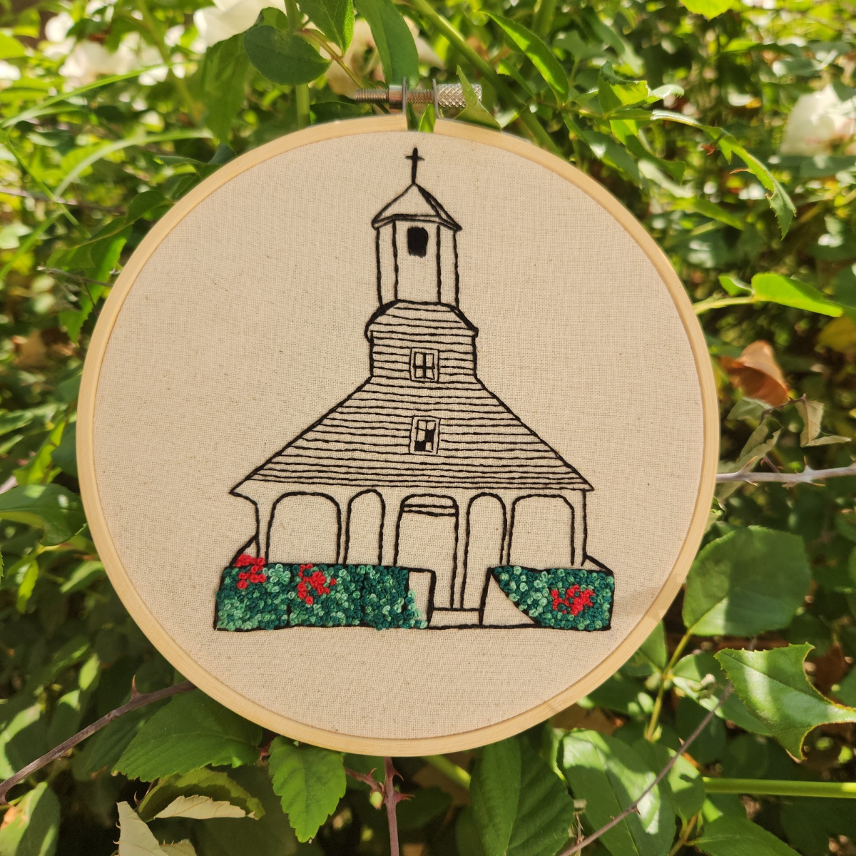 Al final, me decidí por una foto de una Iglesia Patrimonial en la Isla de Chiloé (Chile). Es un lugar que me trae lindos recuerdos y quise rendirle un pequeño homenaje a través del bordado.