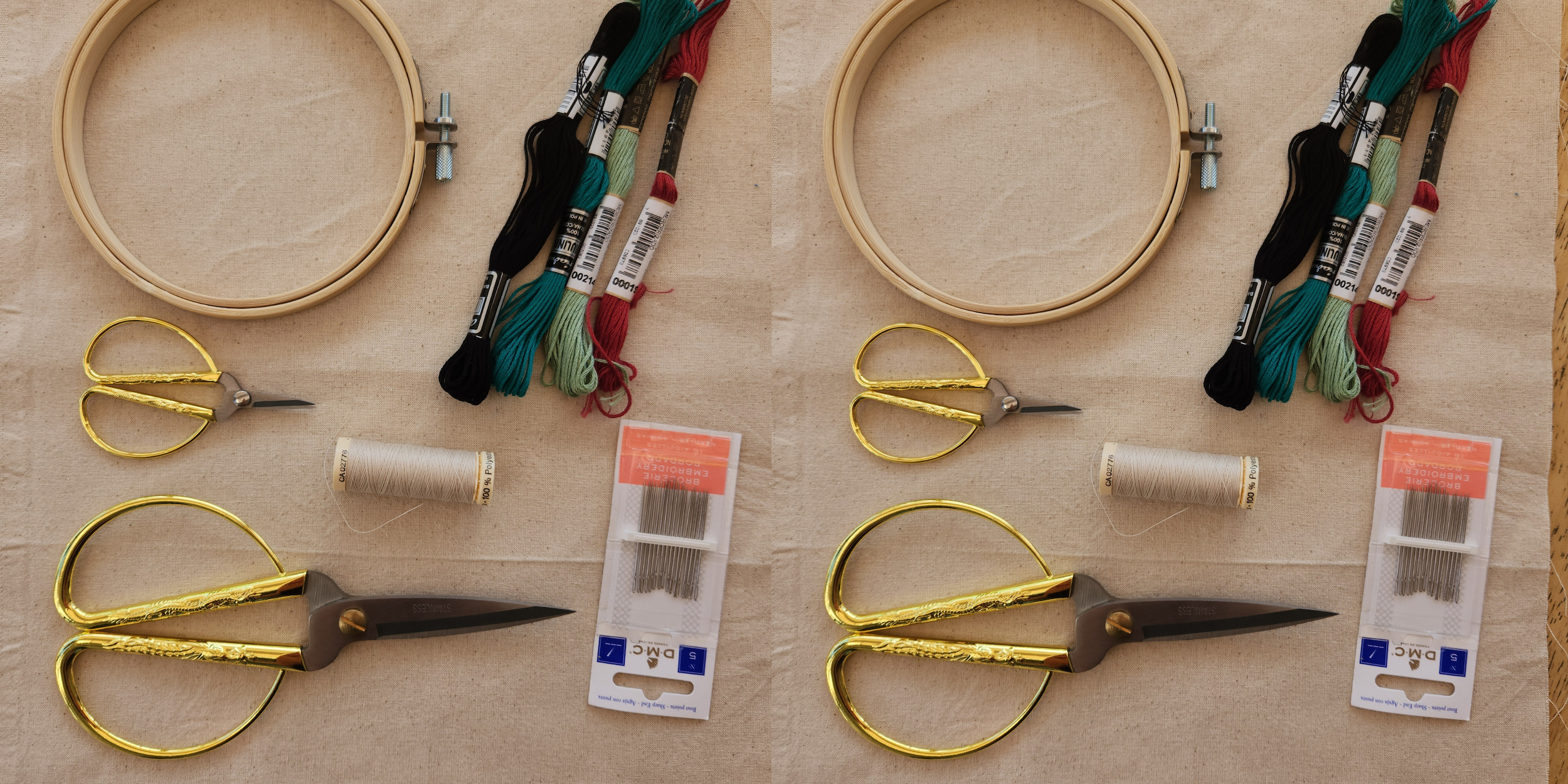 Le matériel peut varier selon ce que vous souhaitez broder, mais voici une liste de base pour vous aider à démarrer. Ils sont tous faciles à trouver et vous n'avez pas besoin de tout avoir dès le départ :
