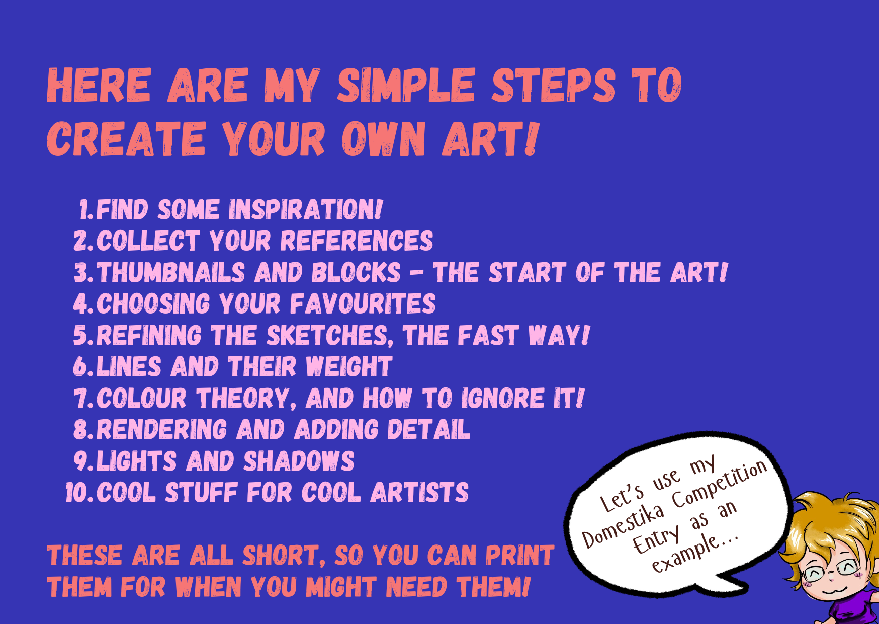 Ah, j'ai fait un petit tutoriel pour ça ! Je suis toujours ce modèle, car il est incroyablement efficace pour moi. D'abord, je trouve l'inspiration. C'est ce qui me motive à gribouiller, du moins pour moi. Ensuite, je trouve des références – elles peuvent venir de n'importe où – regardez partout, car on ne sait jamais ce qu'on va trouver de cool ou d'utile.