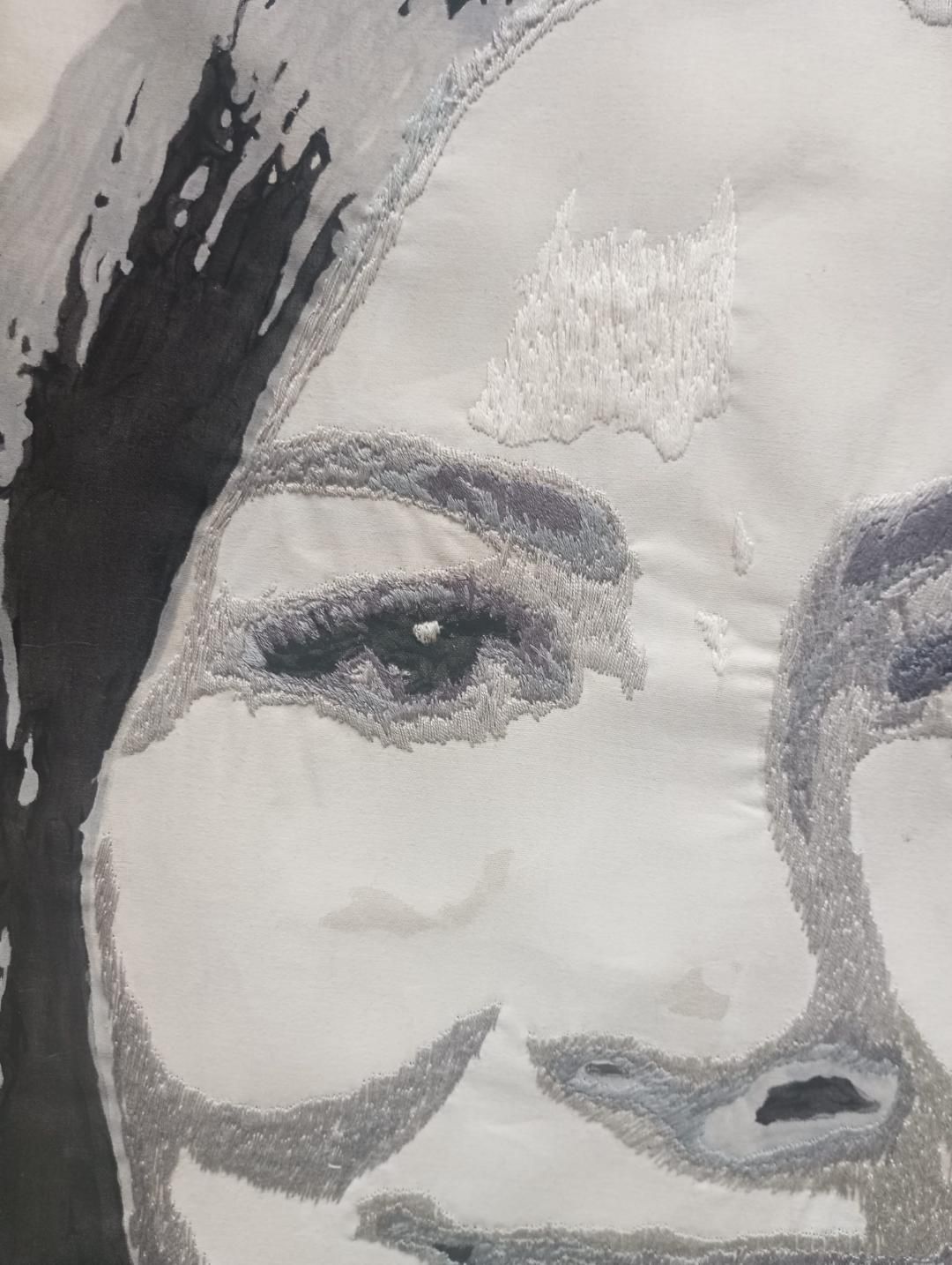 La pieza que he elegido para este proyecto, refleja la armonía entre el bordado y la pintura acrílica, con texturas muy interesantes para mi.
