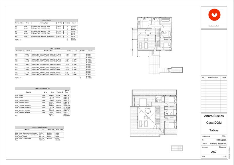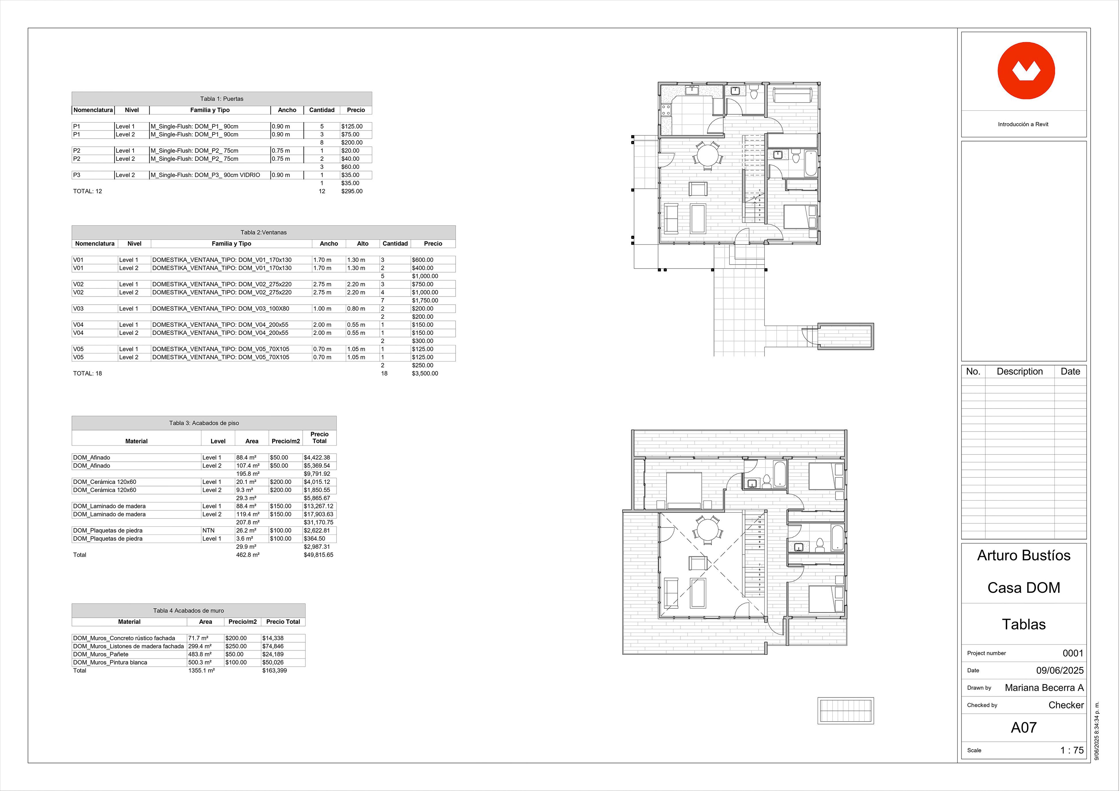 Se incluyen las 7 láminas desarrolladas usando la planimetría, vistas 3D y tablas realizadas en el curso.