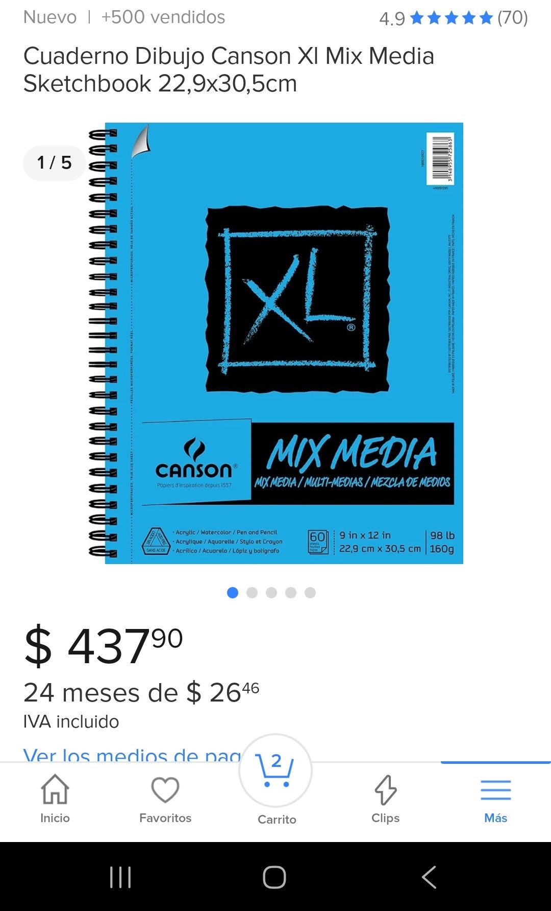 También utilice una hoja de una libreta Canson, Mix media 160g, de igual forma la compre en Mercado Libre.