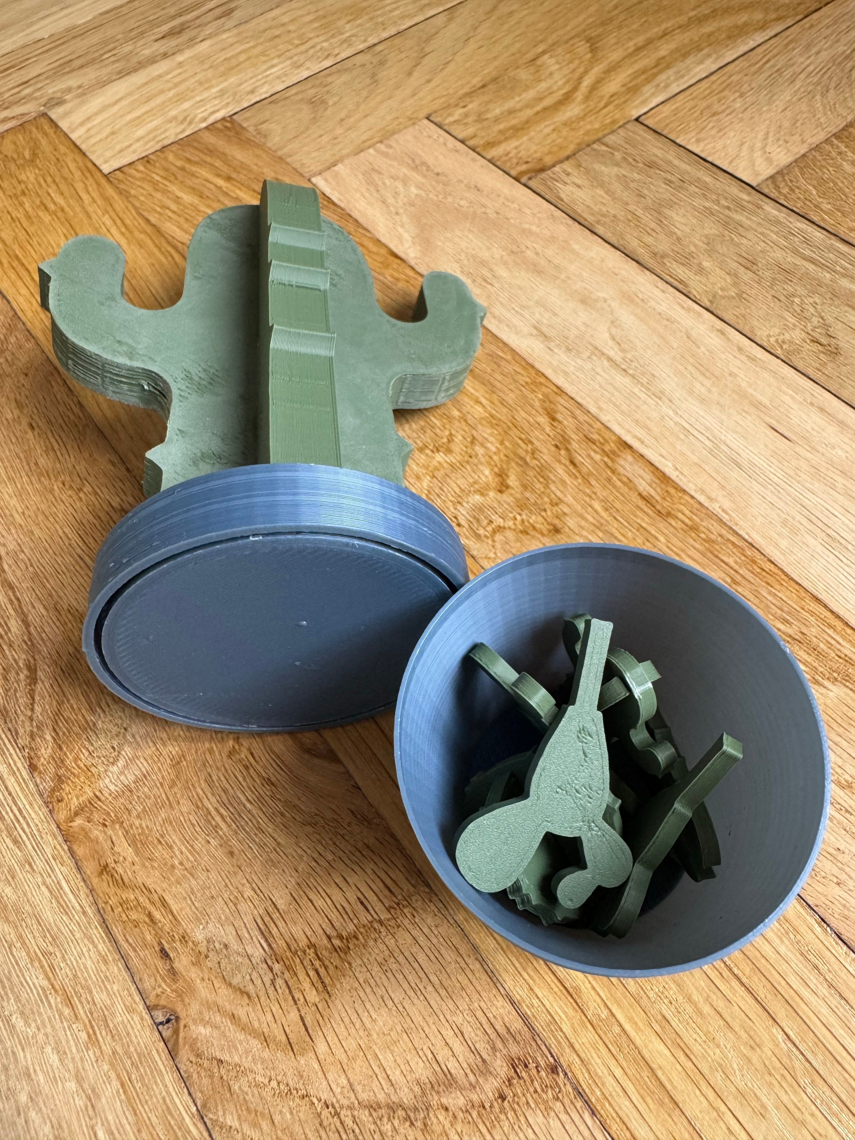 J'ai conçu un grand cactus avec son pot et j'ai expérimenté aussi d'autres petites pièces de formes diverses.