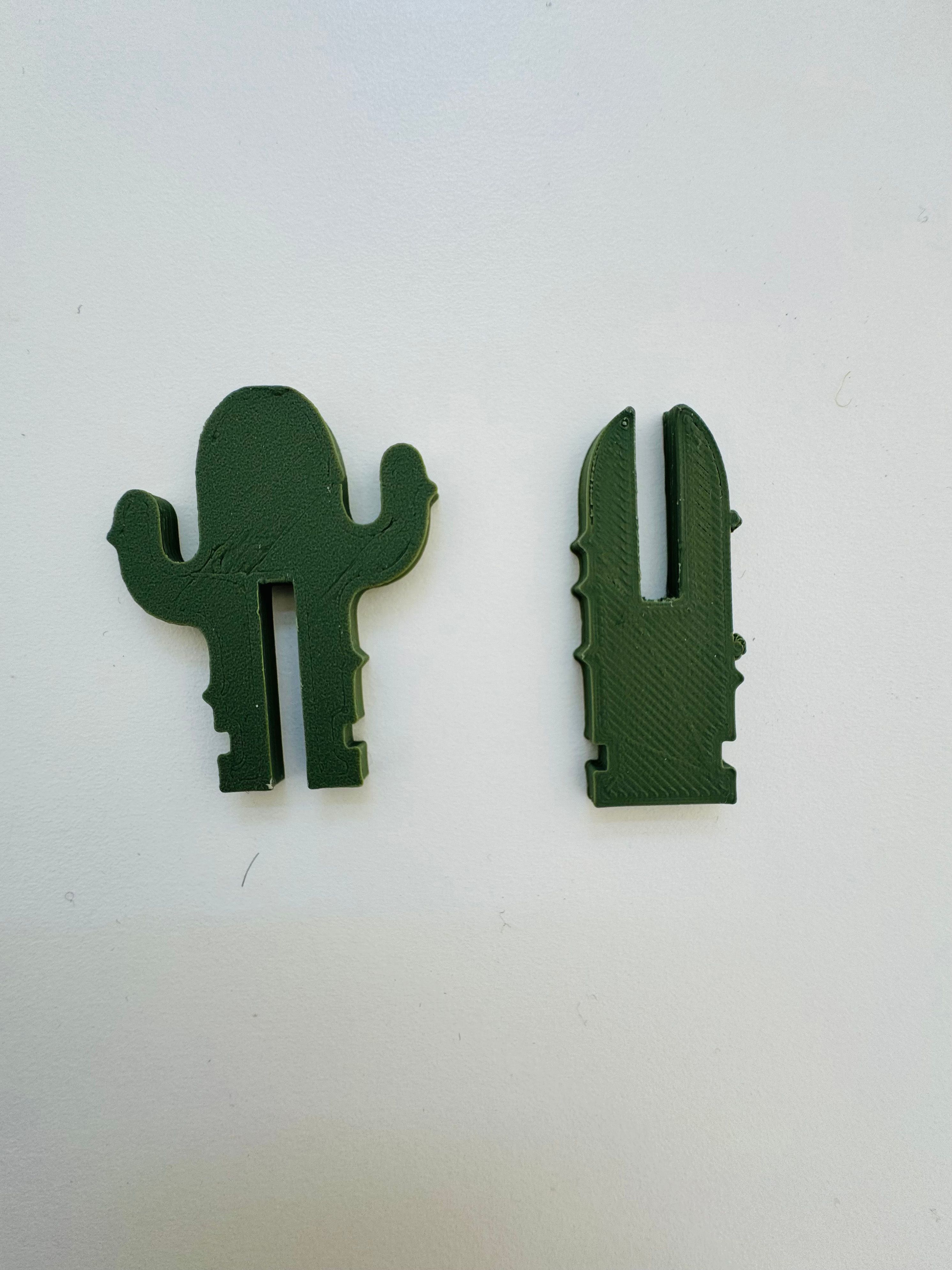 I used a PC and 2D drawing tool in TinkerCad to sketch the basic shapes of the cactus and then I added thickness.