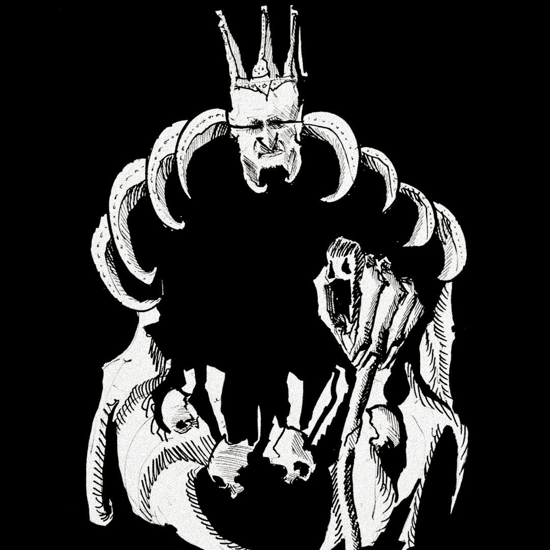 Representación imaginaria de una escena de drama en una guerra perdida. Un muerte dolorosa, un rey soberano, y un posible tercero como representacion del mal.