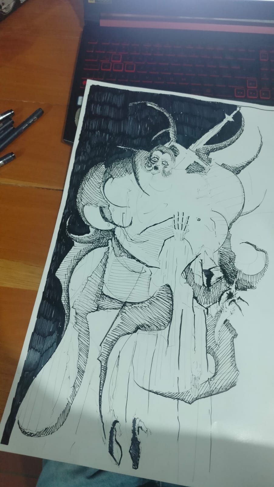 De un imaginario medievo, inspirado en obras expresionistas y artistas como Francisco de Goya inicio con un boceto rápido