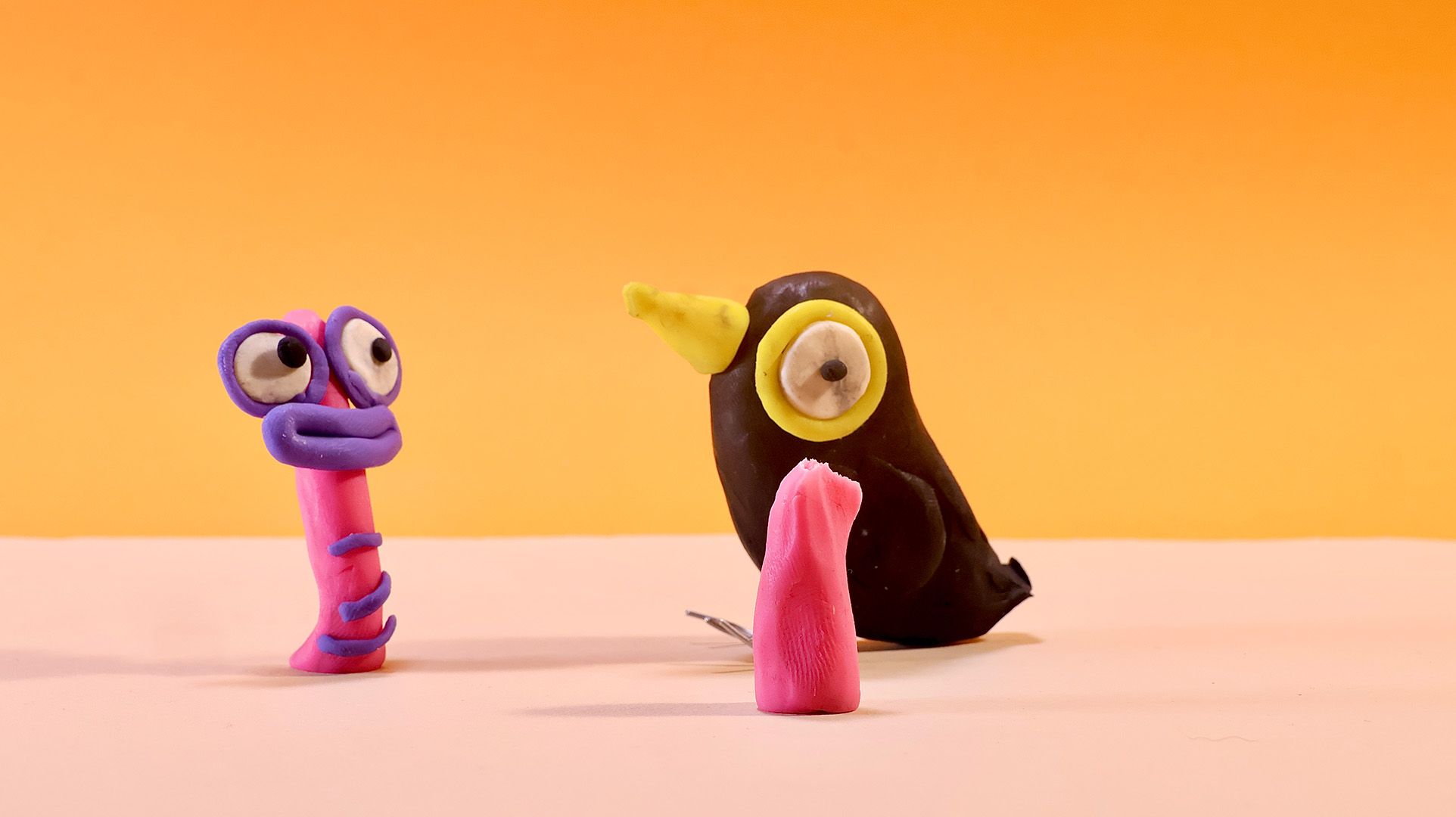« Sur le fil » — un court stop motion en pâte à modeler, où un ver rusé se joue du bec d’un merle.