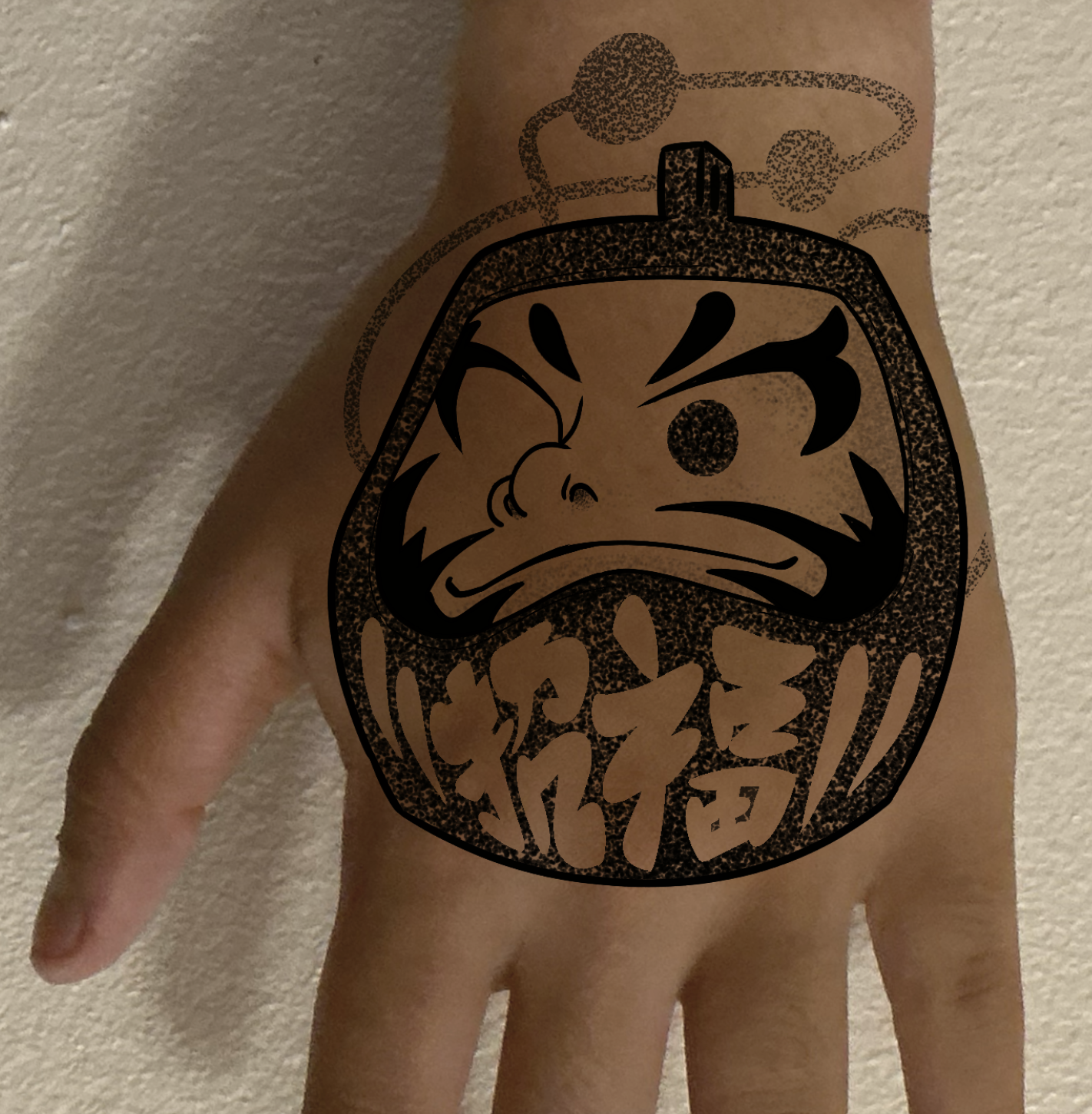 Lo realice despues de estar buscando algo para autotatuarme, despues de tanto buscar me gusto el significado que tiene el daruma, y lo mucho que me representa