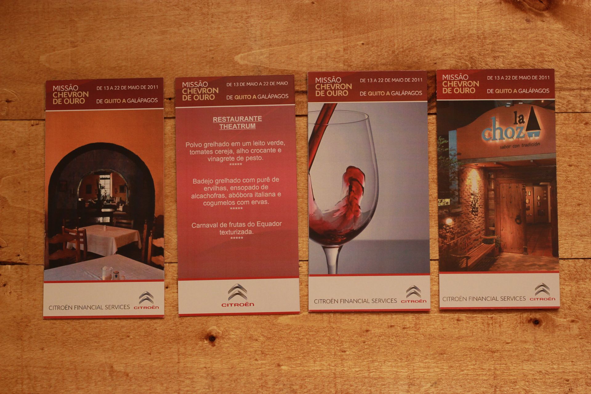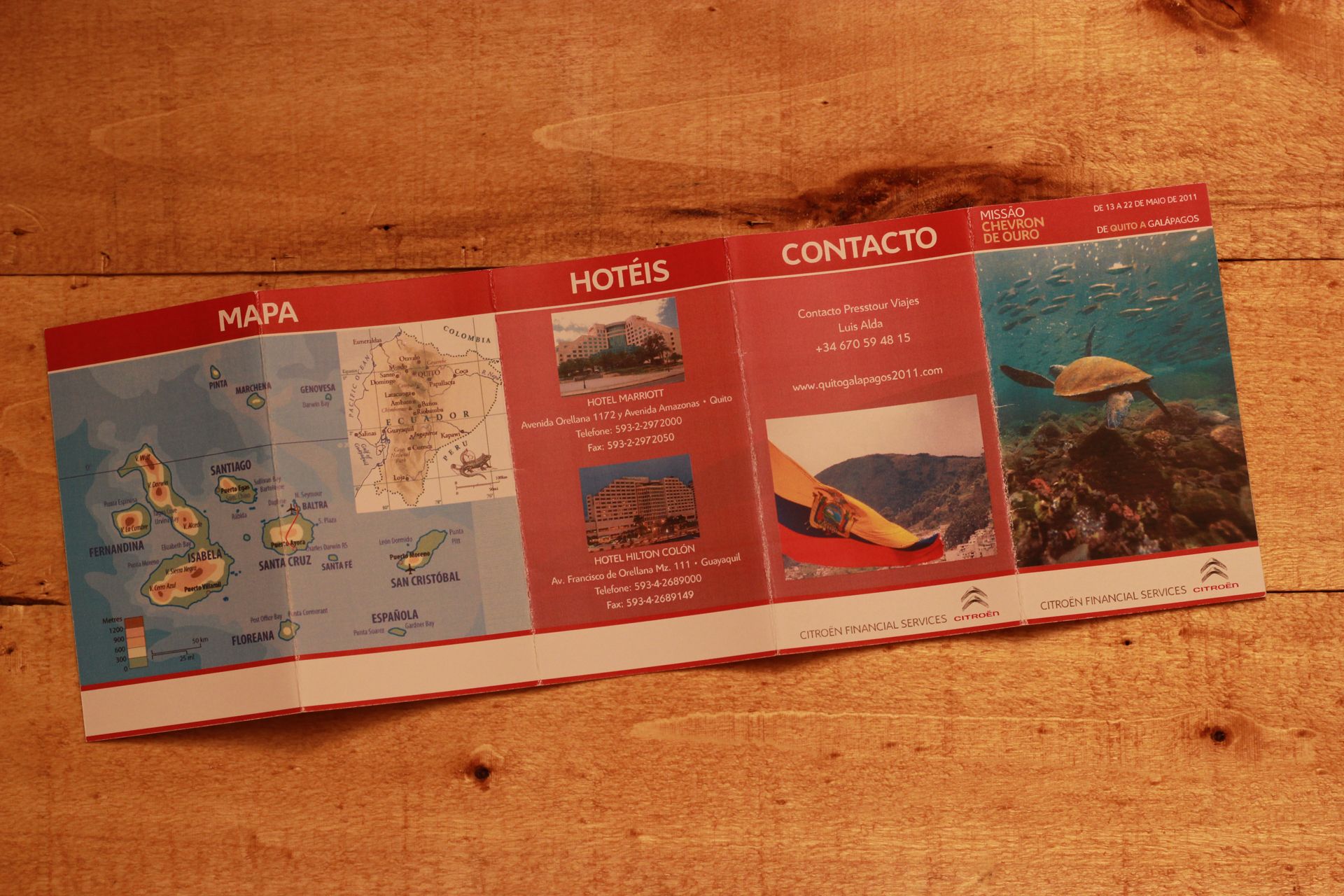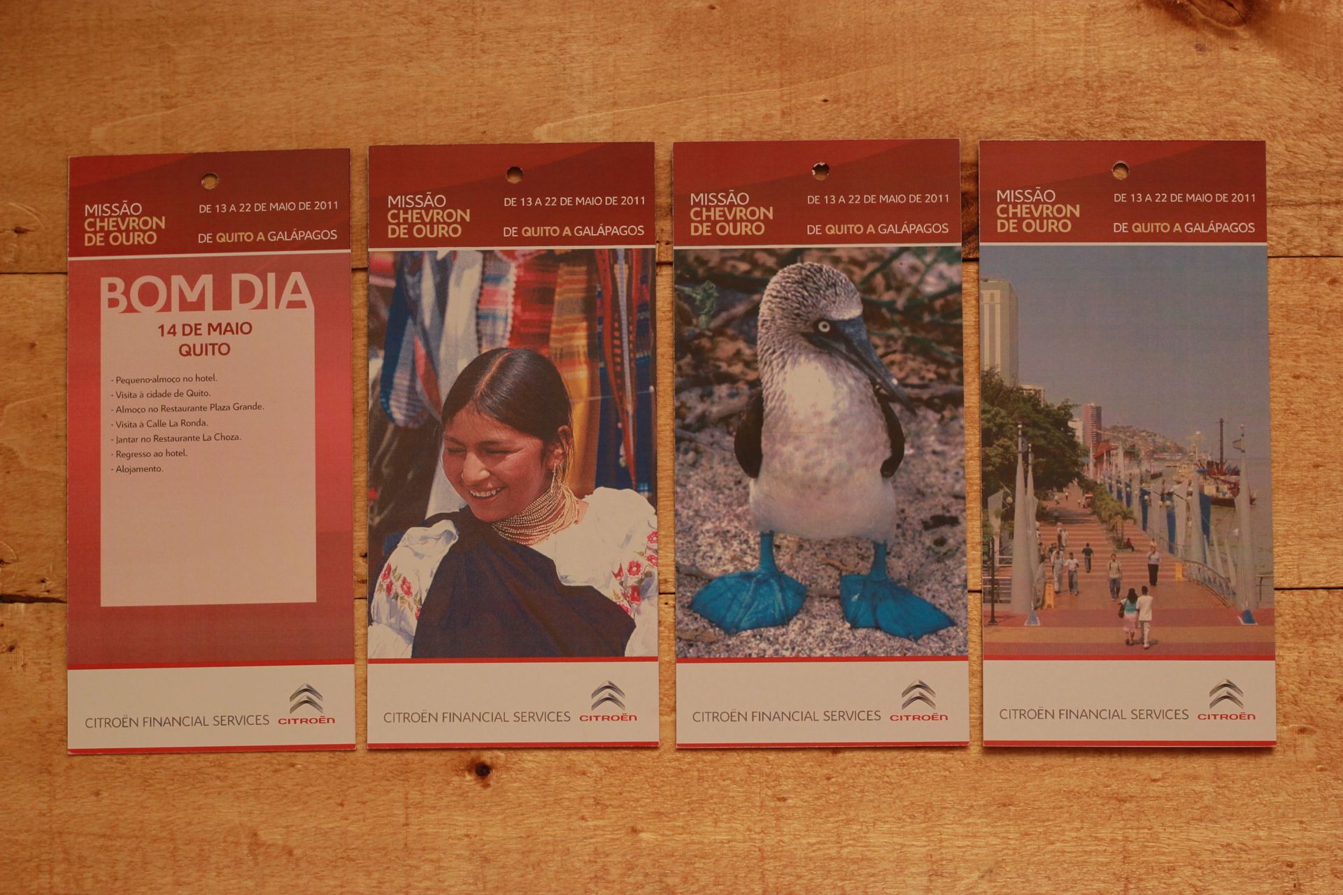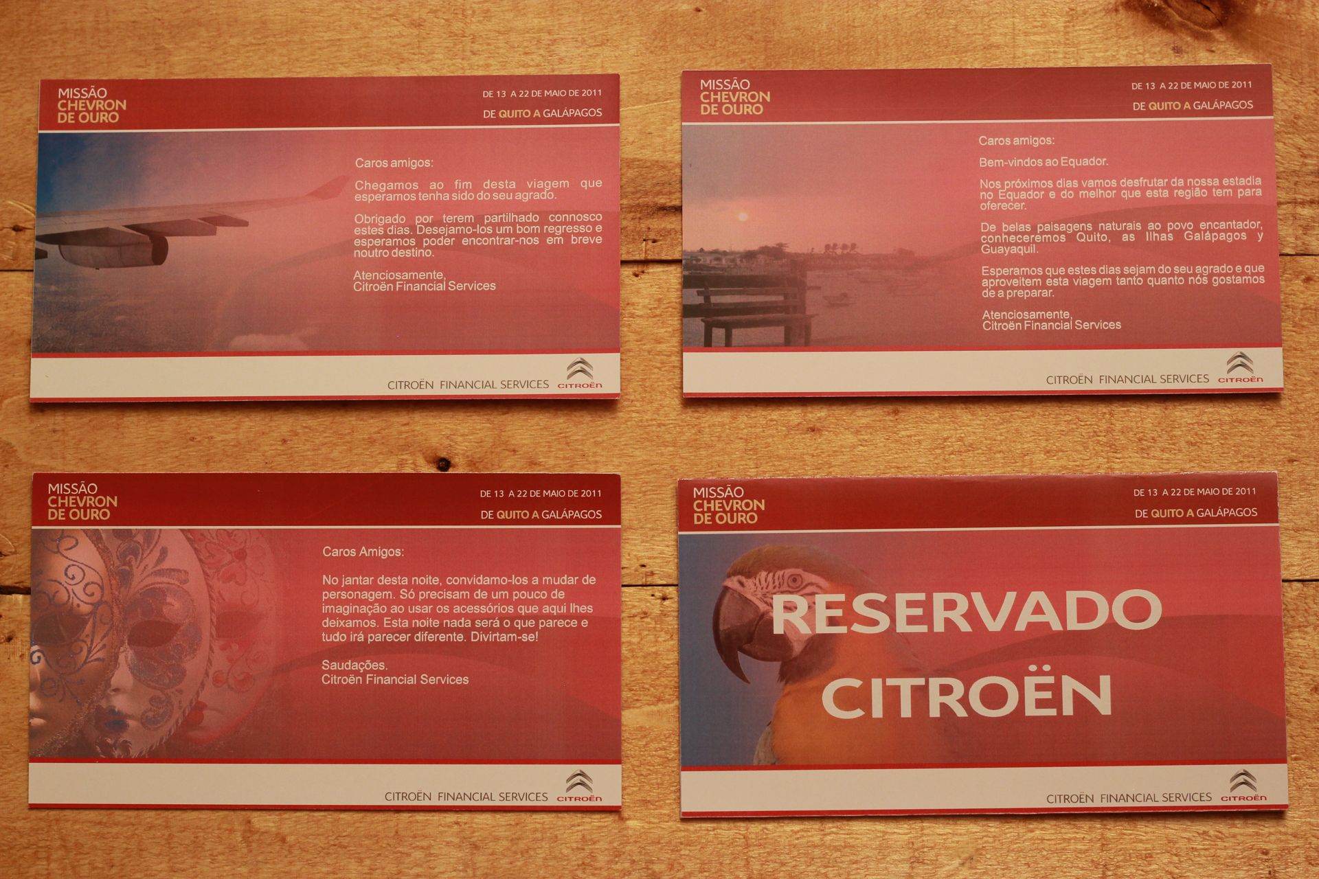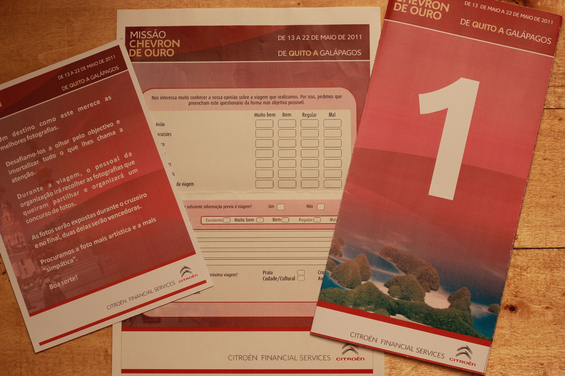 Campaña de comunicación (solo algunos elementos) creada para Citroën Financial Services en Portugal en el viaje de incentivos a Quito y a las Islas Galápagos como parte de mis prácticas en Presstour Viajes.