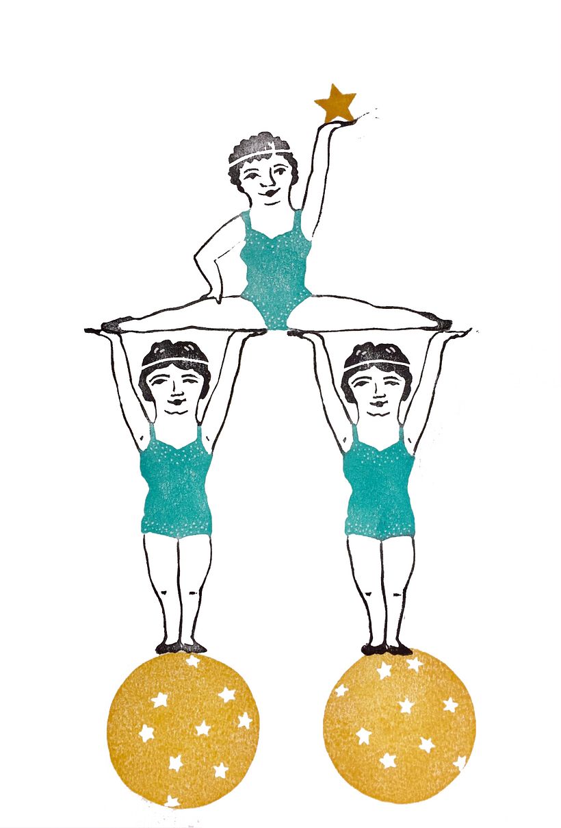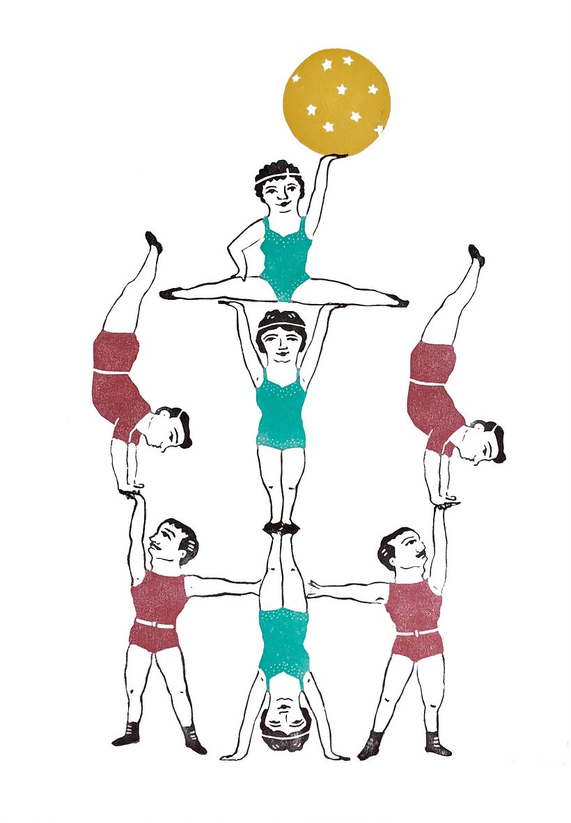 Mi proyecto de sellos "Ale hop!!" surge de la idea de hacer varios acróbatas que se puedan combinar entre ellos y que, jugando también con la repetición, den pie a distintas composiciones cirquenses. Me ha quedado en el tintero trabajar un fondo, hacer mas personajes y mejorar la técnica de carvado, ya que alguna que otra linea me he comido. Seguiré!! ;)