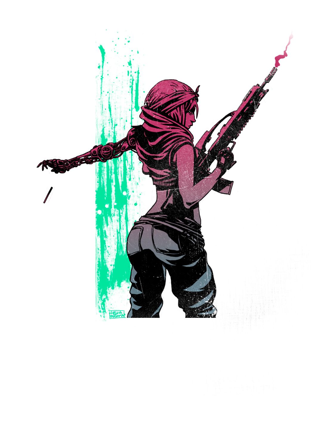 Ahora si, el color. Muy sencillo para esta ilustración. En mi opinión a veces no hay que romperse la cabeza ni matarse a trabajar para crear algo interesante, sino echarle imaginación y unos colores que funcionen. Basta con seleccionar nuestra previa plantilla y usar un degradado entre dos colores. Pam. Ya esta el 50% hecho.