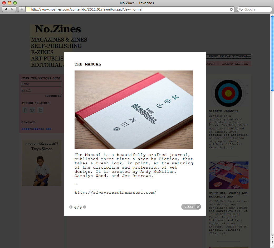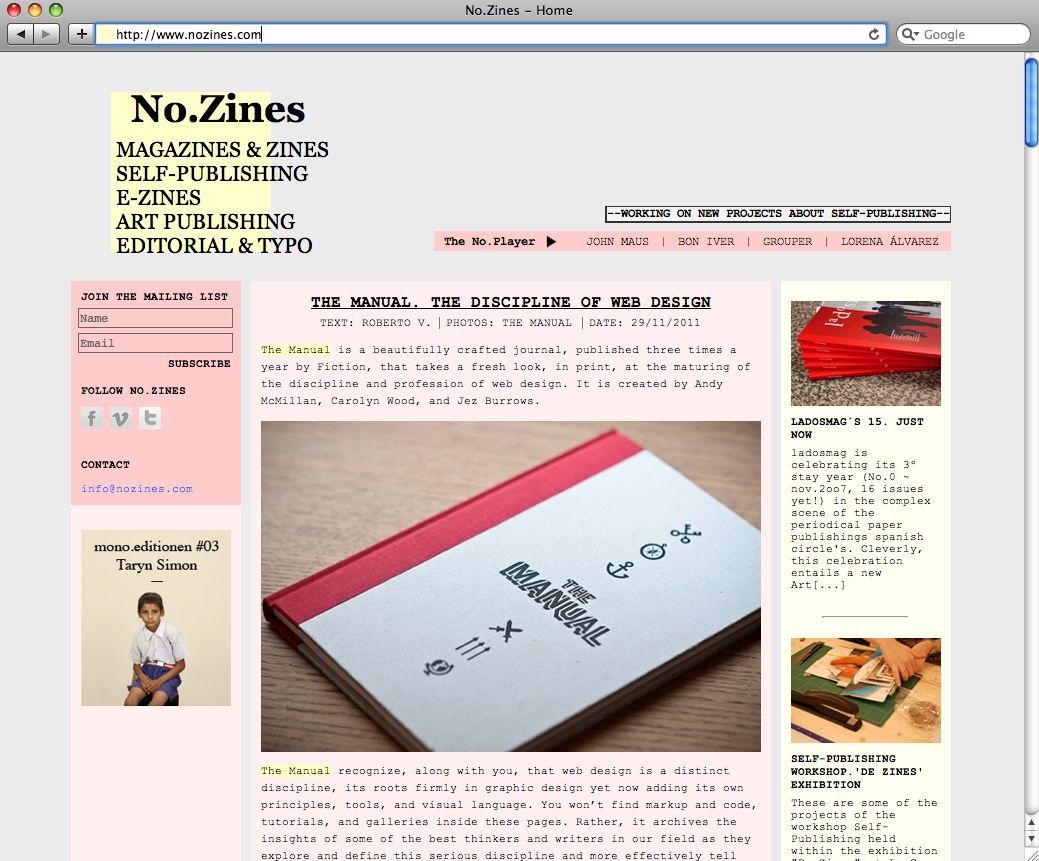 Web: "No.Zines" // Año: 2010 // Cliente: No.Zines, about independent publications