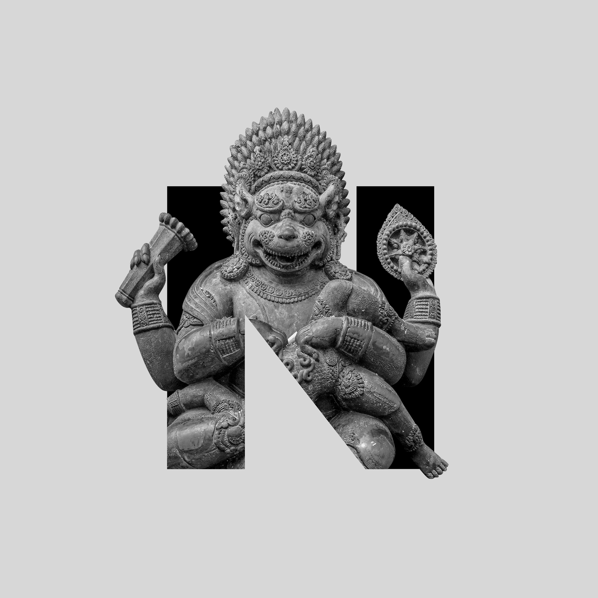 The graphic construction was made from taking a photograph of a traditional sculpture and mixing it with the first letter of the name of the deity, having as a result a graphic composition around typography. Also, every design had a brief description about the deity and its culture.