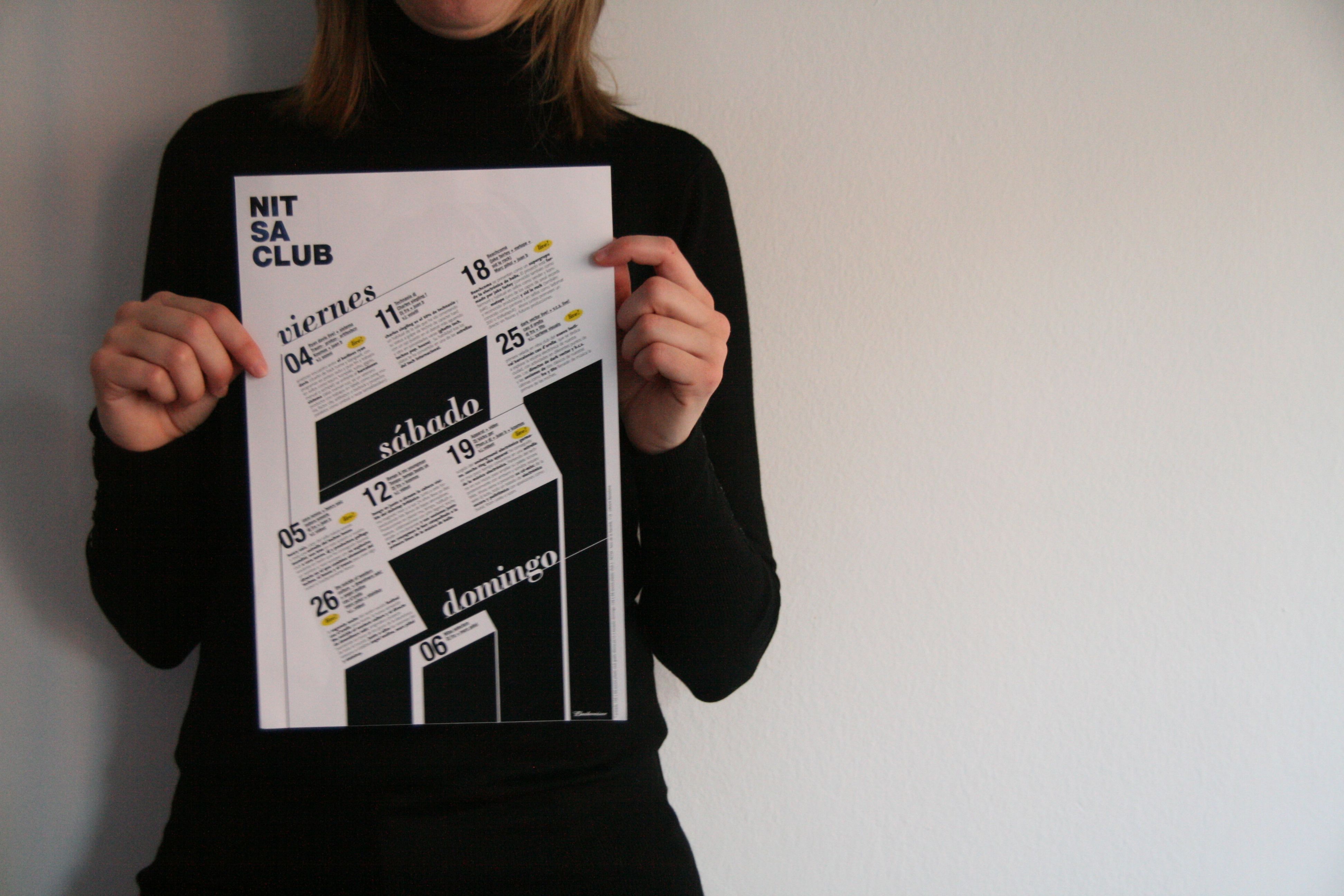 Maquetación de la programación mensual de la famosa sala NITSA de Barcelona, en los que alberga los mejores grupos y Dj's electrónicos del panorama musical
