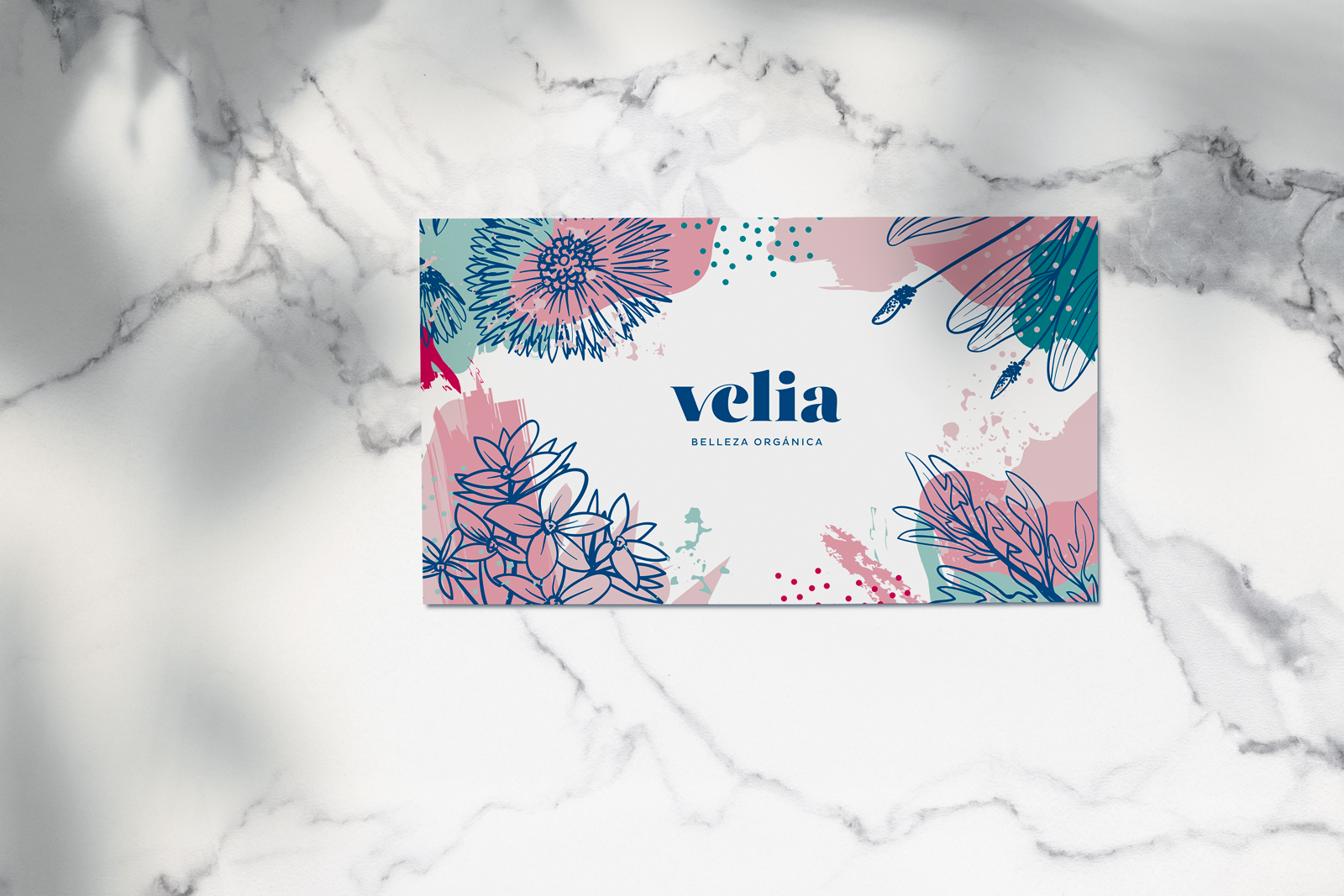 Velia se posiciona como un centro especializado en estética terapéutica, su imagen por tanto, debe reflejar los conceptos de belleza y salud. El servicio está dirigido a un público femenino de entre 30 y 45 años, a veces con problemas de alergias a ciertos productos, pieles sensibles, etc. a las que no les importa pagar un poco más a cambio de recibir un servicio estético más natural, a base de productos vegetales de alta calidad.