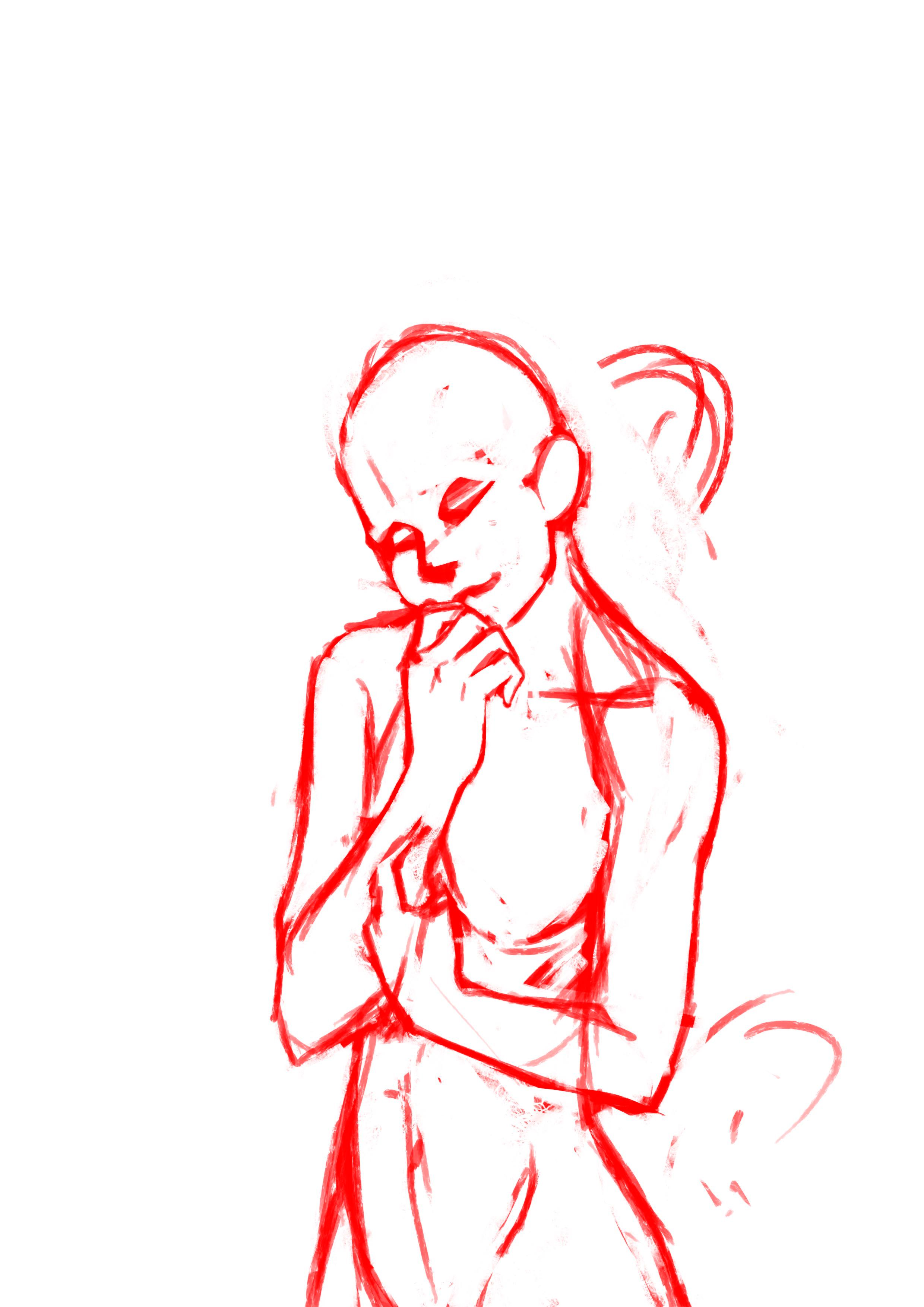 El primer paso fue definir la postura y expresión. Quería algo que mostrara un poco de timidez e inseguridad, al mismo tiempo que belleza.