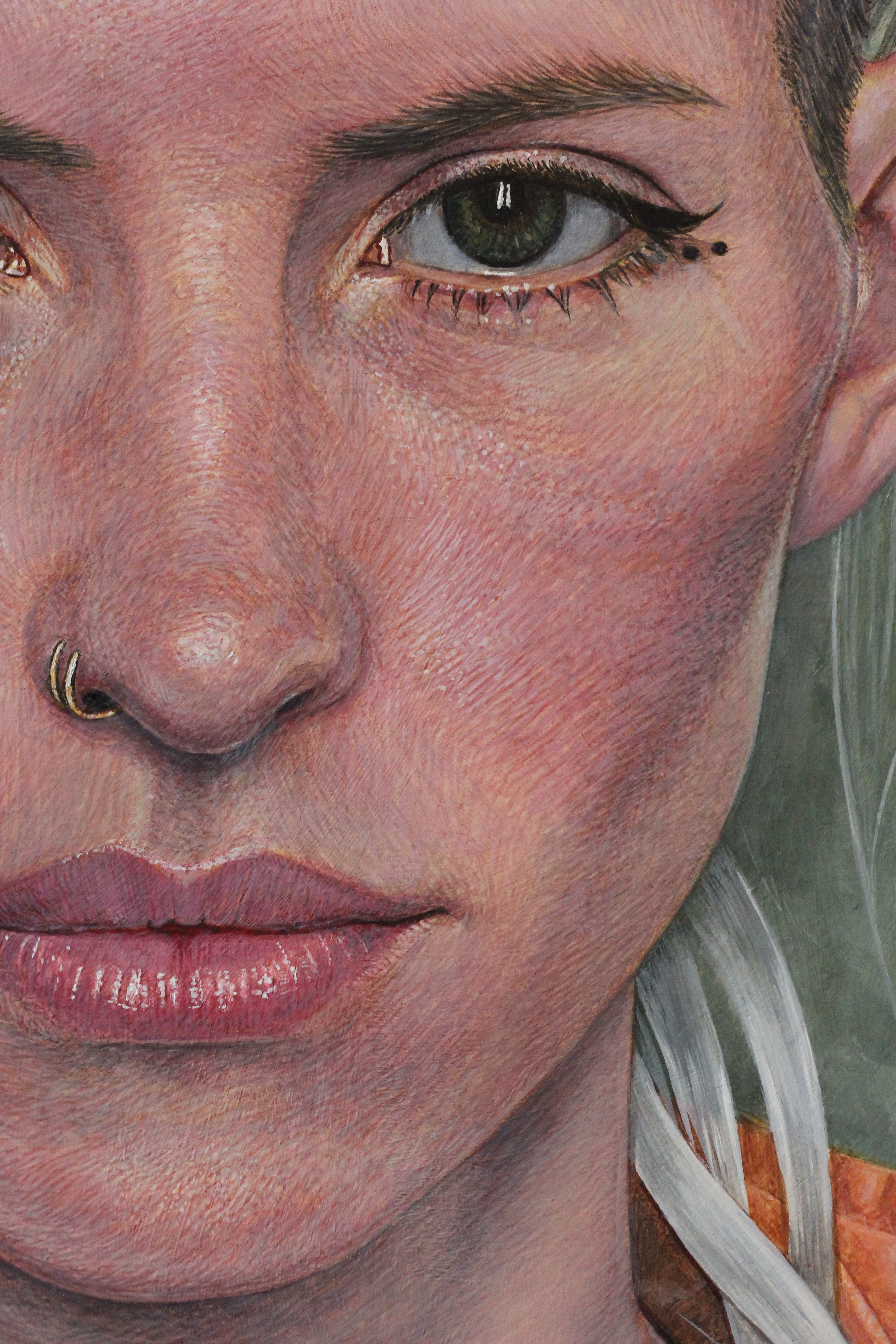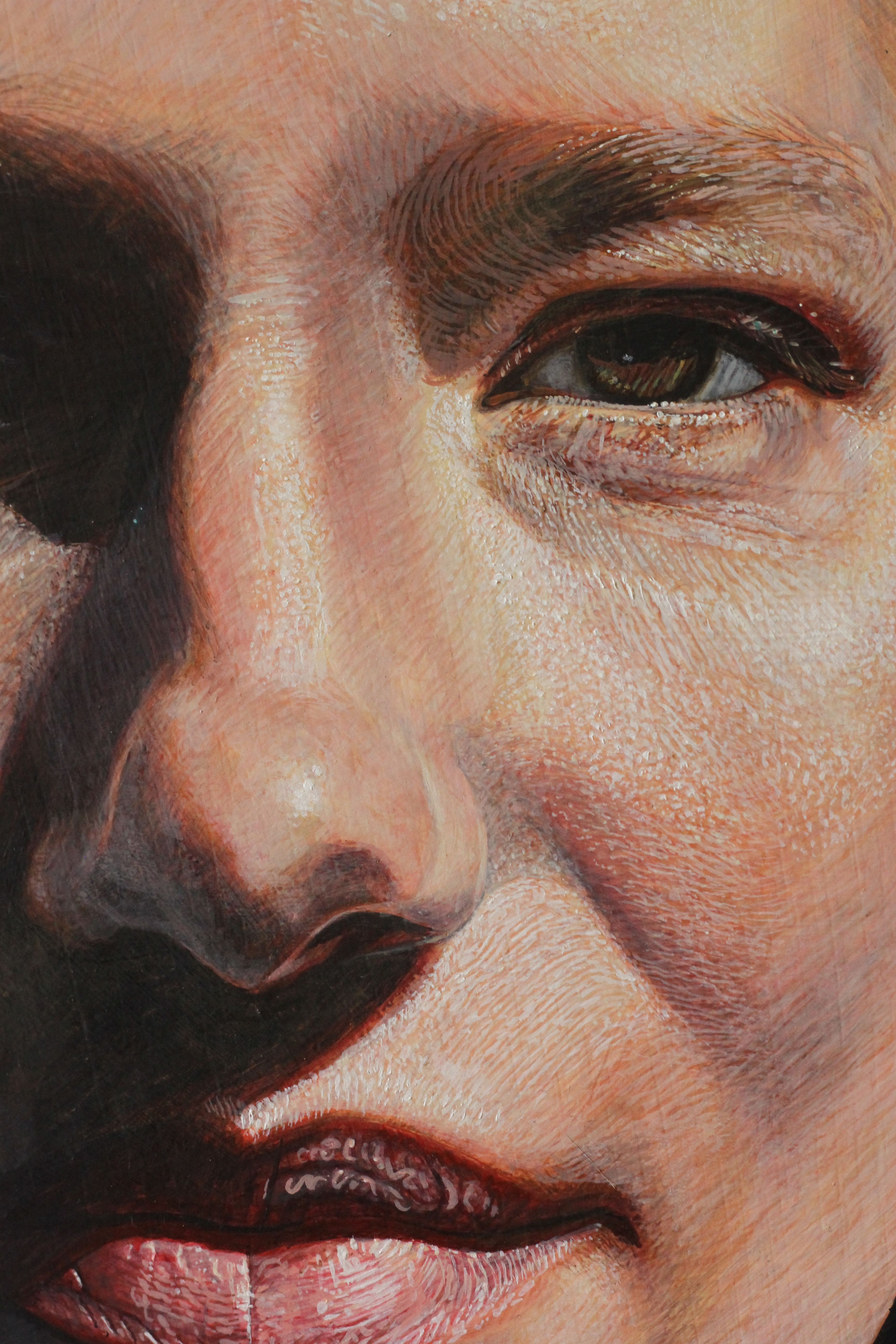 Détails. Fines traces de pinceau à la peinture à l'huile.