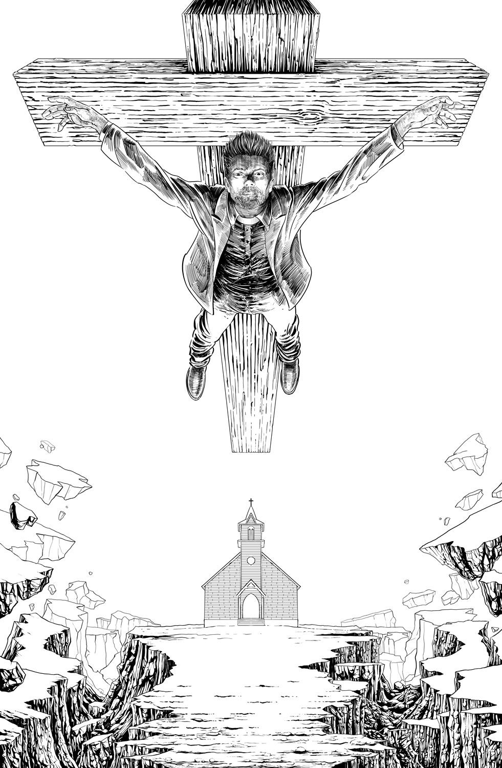 Creado en Adobe Photoshop y usando Illustrator para la ilustración de la iglesia.