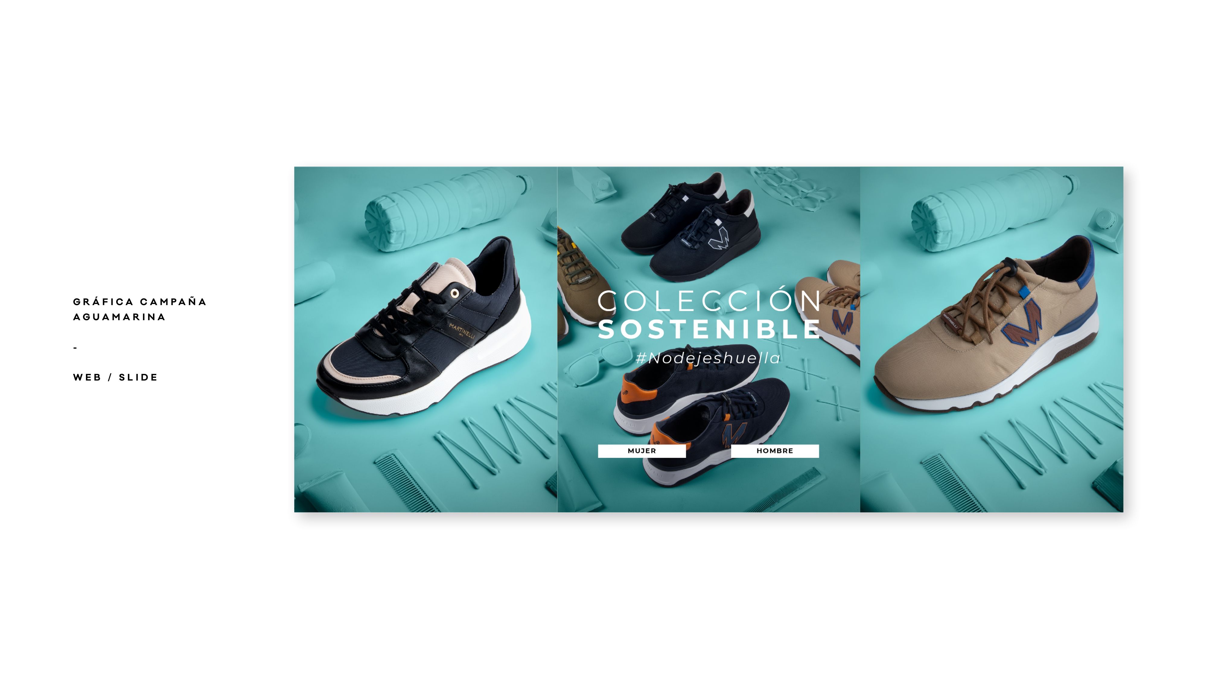 Campaña asentada sobre tres 4 tonos (aguamarina, cian, monocromo, beige). Sus distintas variaciones cromáticas se conciben en base a los diferentes modelos realizados en materiales reciclados. El producto como eje central.