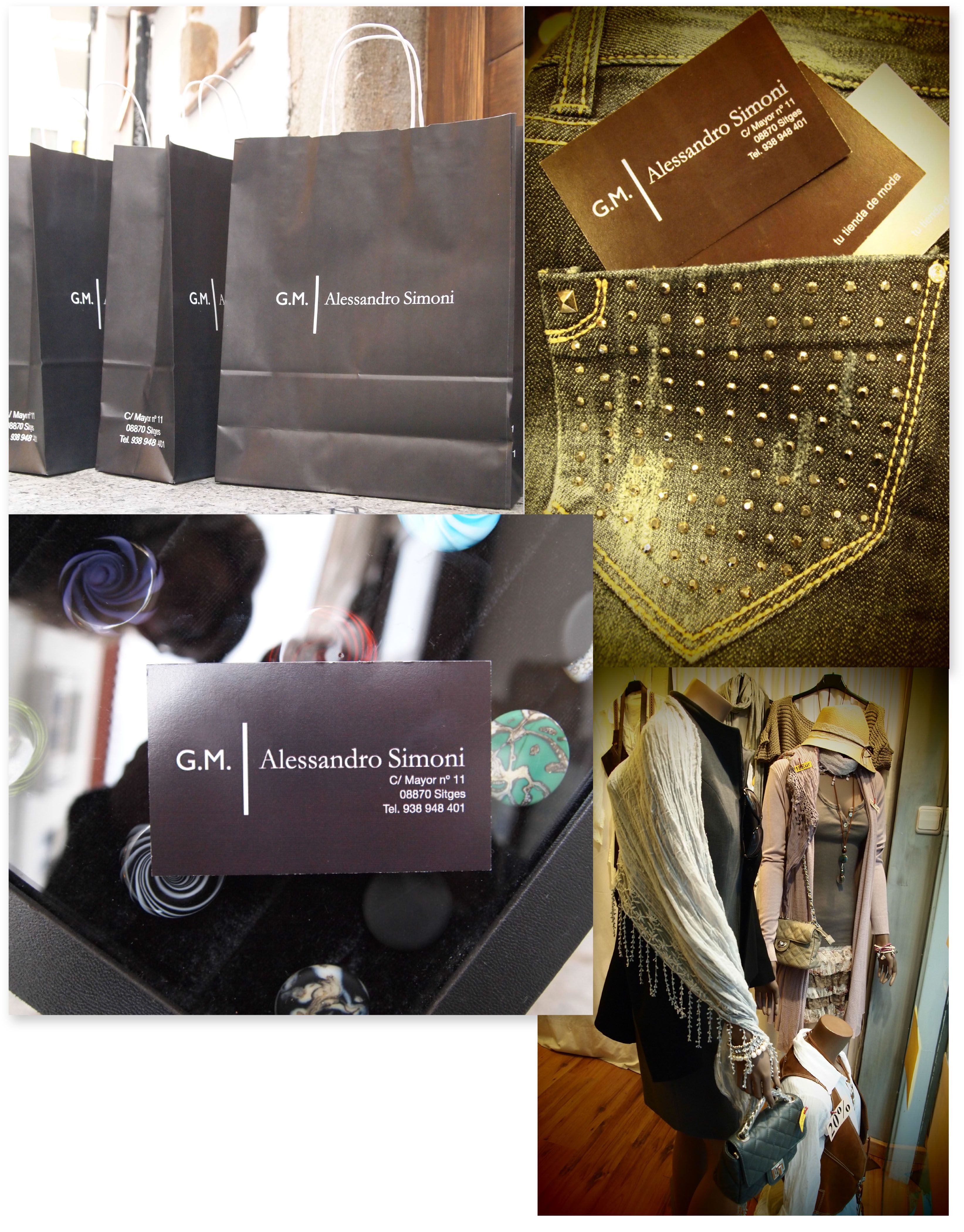/ / Imagen gráfica de GM-Alessandro Simoni, una tienda de ropa multimarca situada en Sitges. Diseño de la imagen gráfica y corporativa ( tarjetas, bolsas, cartel..).