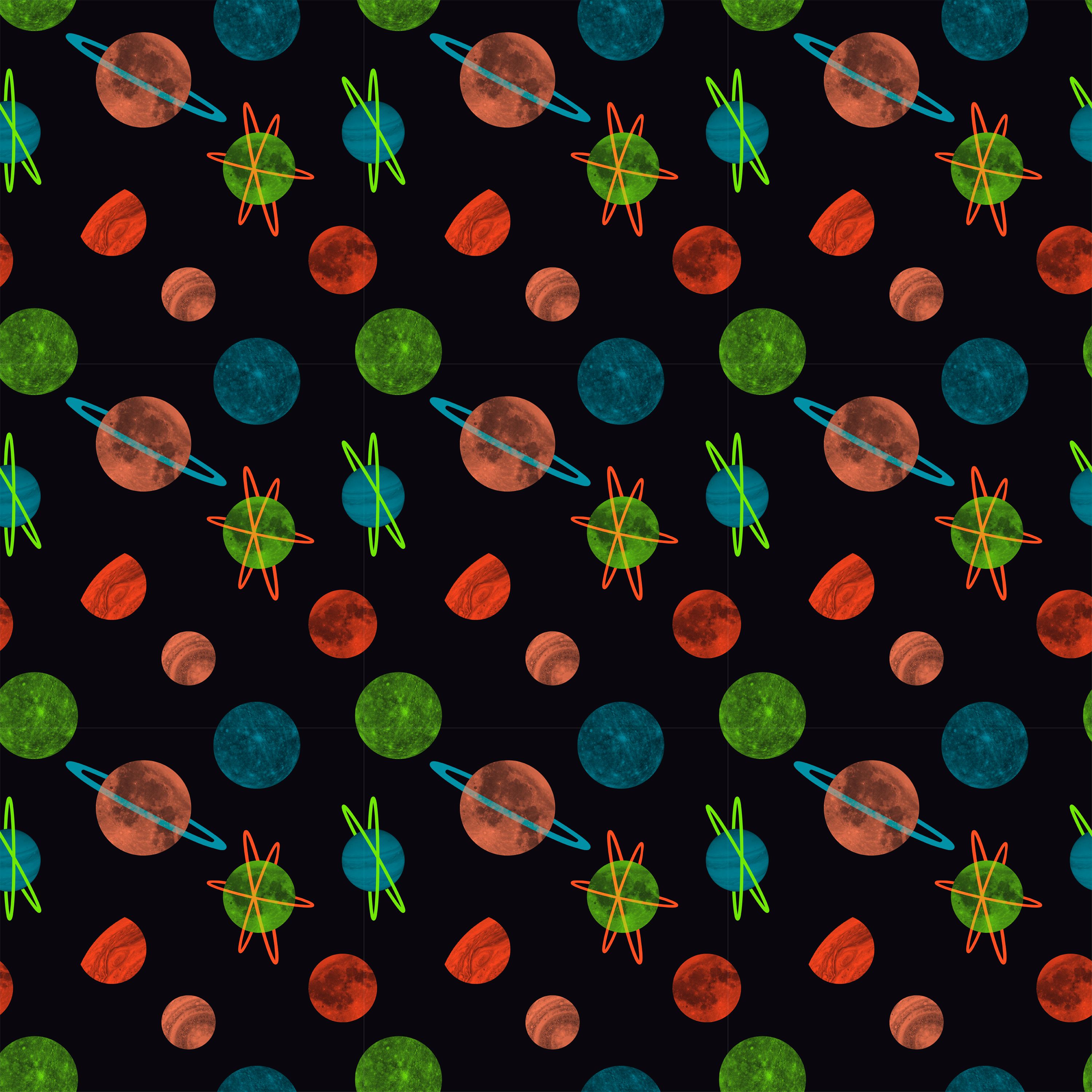 Patron geométrico, negro, rojo, naranja x2 y amarillo