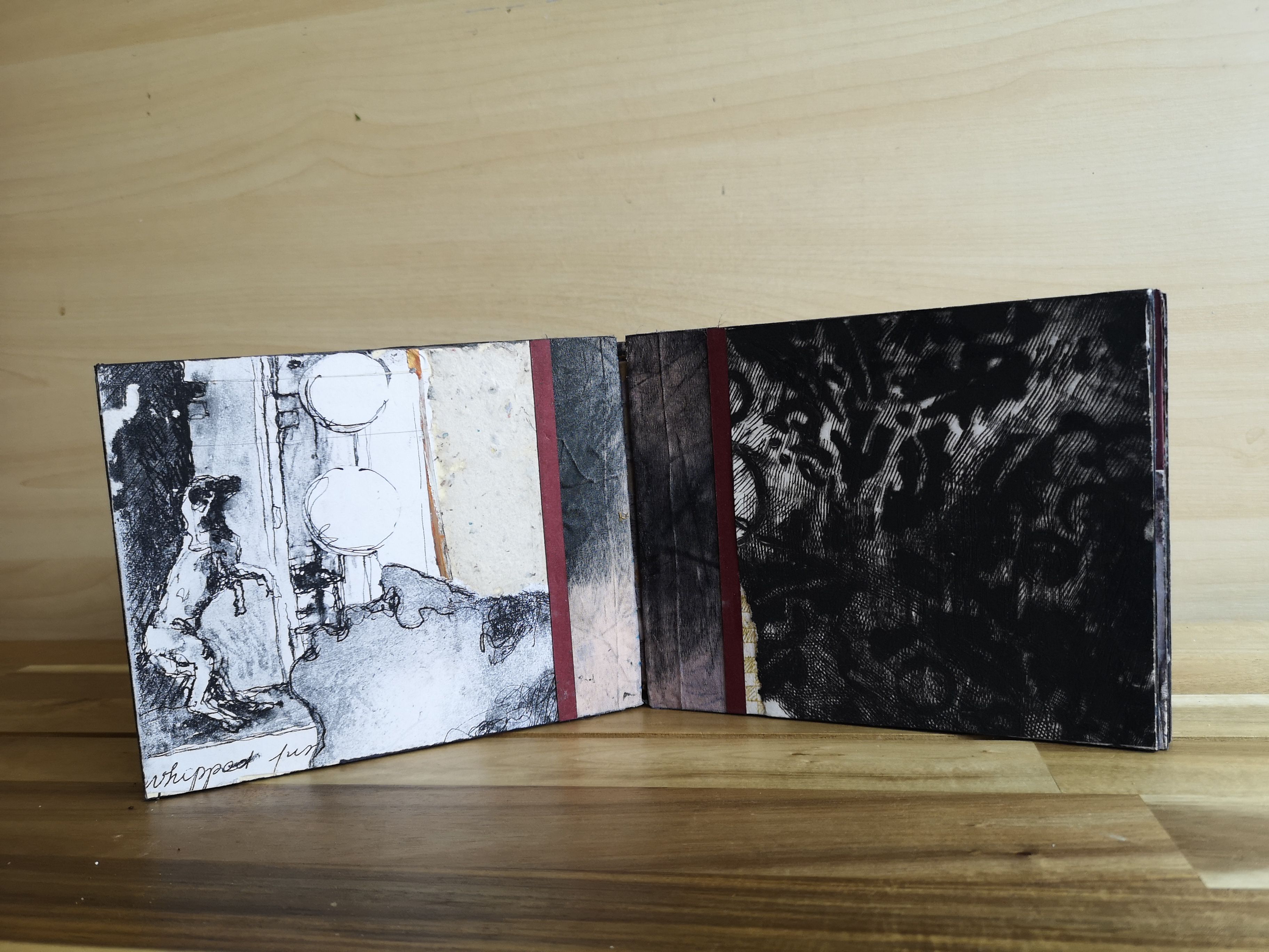 My first bookbinding project. I made a scrapbook of bits and pieces that I had around the studio. I am very happy with it. So pleased it closes flat, doesn't move too much and is reasonably tidy. I have ordered some tyvek and looking forward to doing a concertina project next. Many thanks to a wonderful teacher