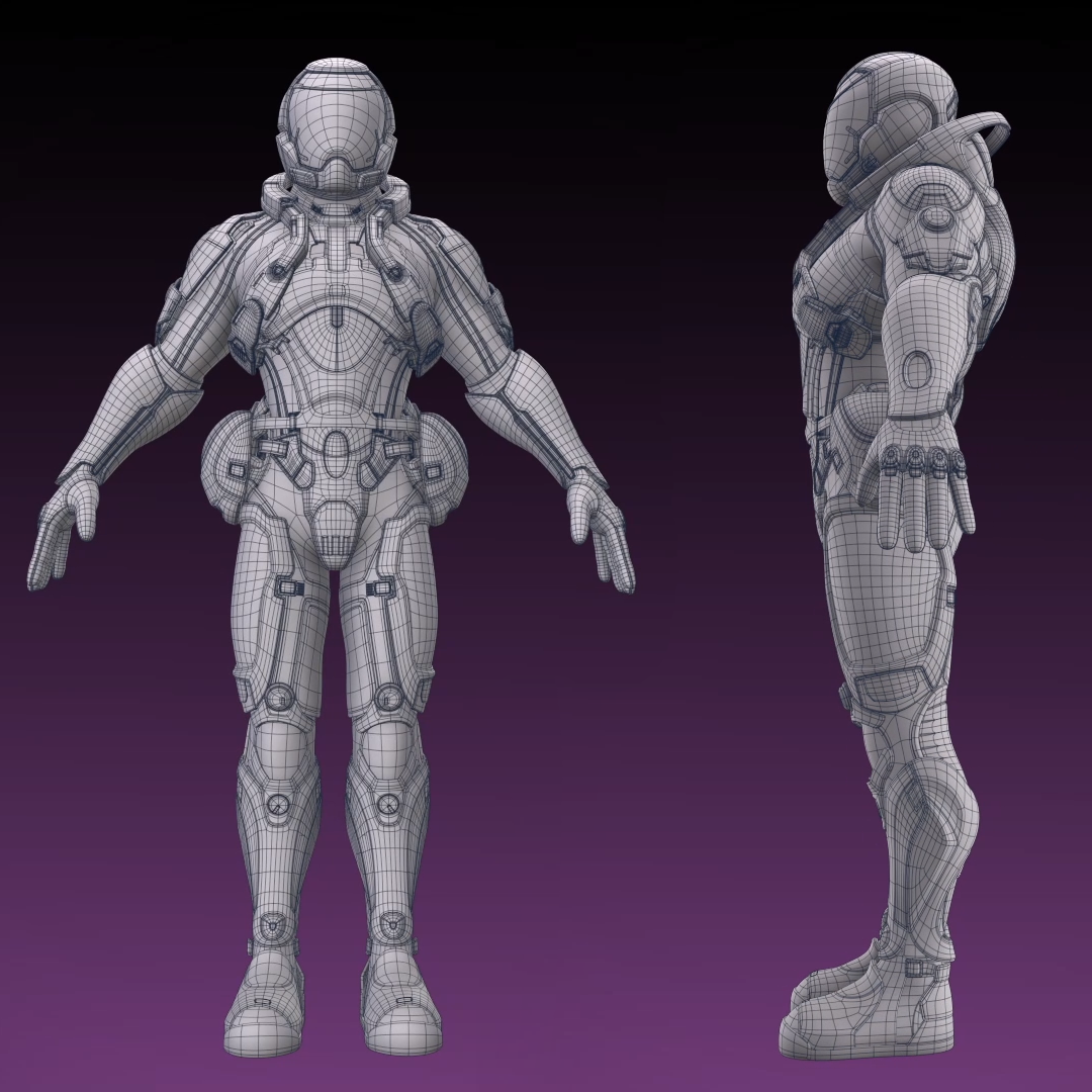 With this modelling I'm sure you'll find us a new home in the Heleus Cluster. Brilliant armour design. Looks like it has lots of Angaran influences, since initiative armours are generally built around human anatomy. Even the colors look distinctly Angaran.