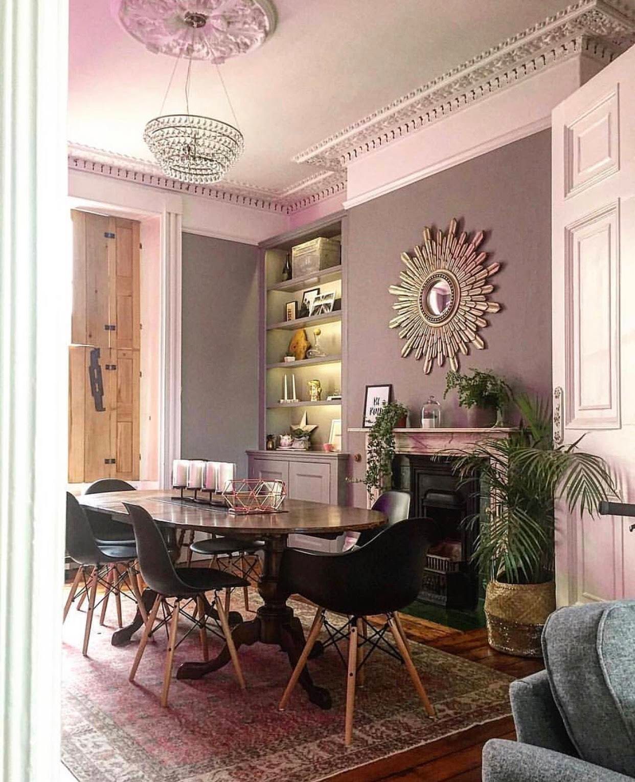 A dining room project involving installation of floor to ceiling built in cupboards and desks and reusing a vintage dining table.