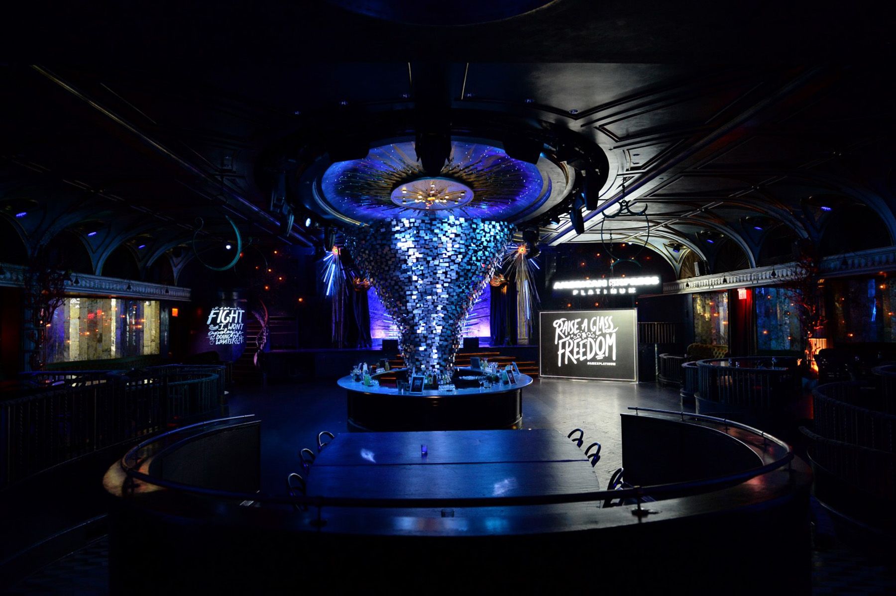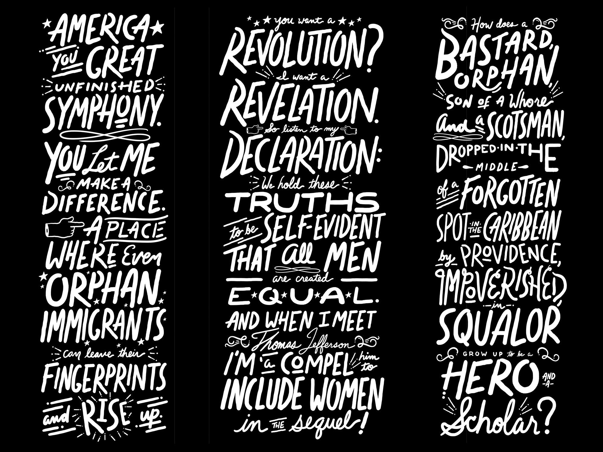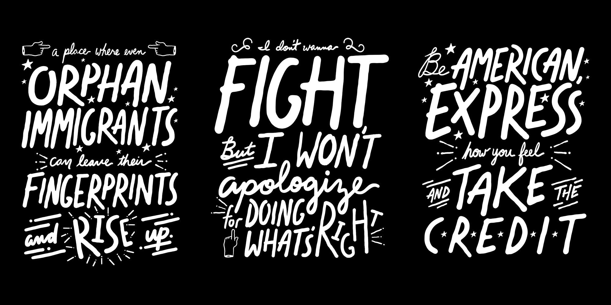 American Express threw a series of parties to celebrate their launch of the Platinum card and they teamed up with Hamilton the musical to create a unique event experience at The Diamond Horseshoe at the Paramount Hotel across from the Richard Rodgers Theatre. The Diamond Horseshoe is a massive and beautiful space and I was tasked with creating custom lettering utilizing the lyrics of Hamilton. Assets included vinyl wrapping on glass, projected lyrics, large-scale photo-op, and bar dressing/assets.