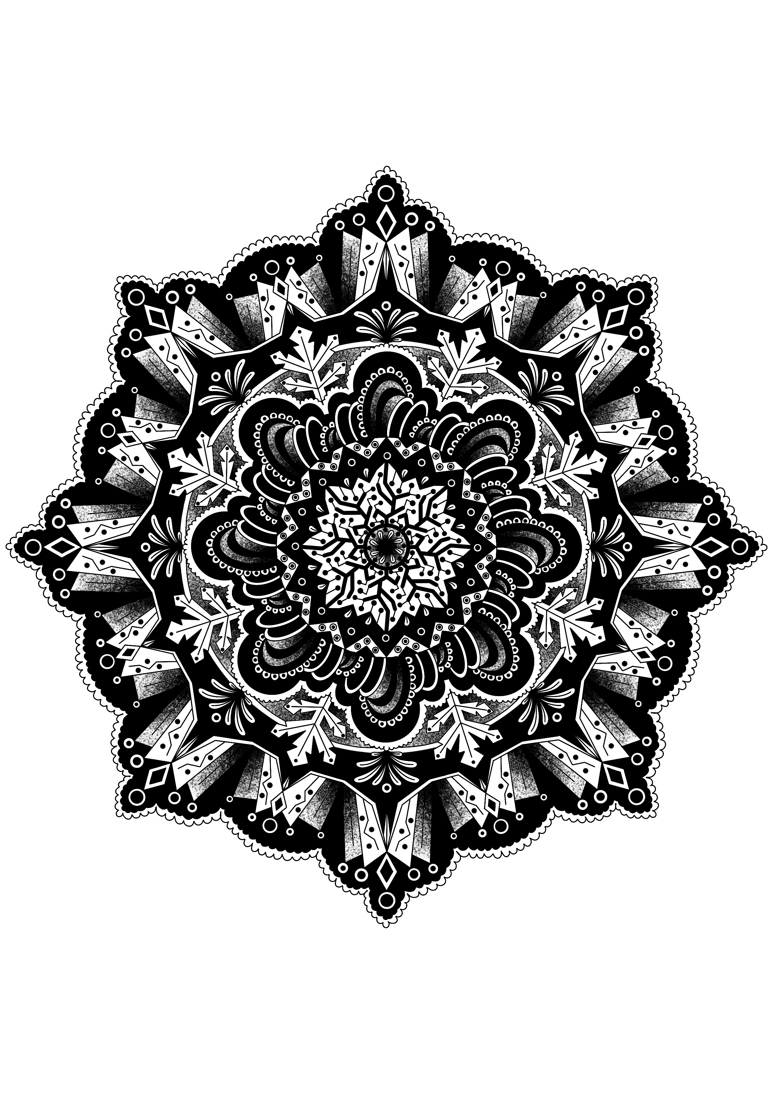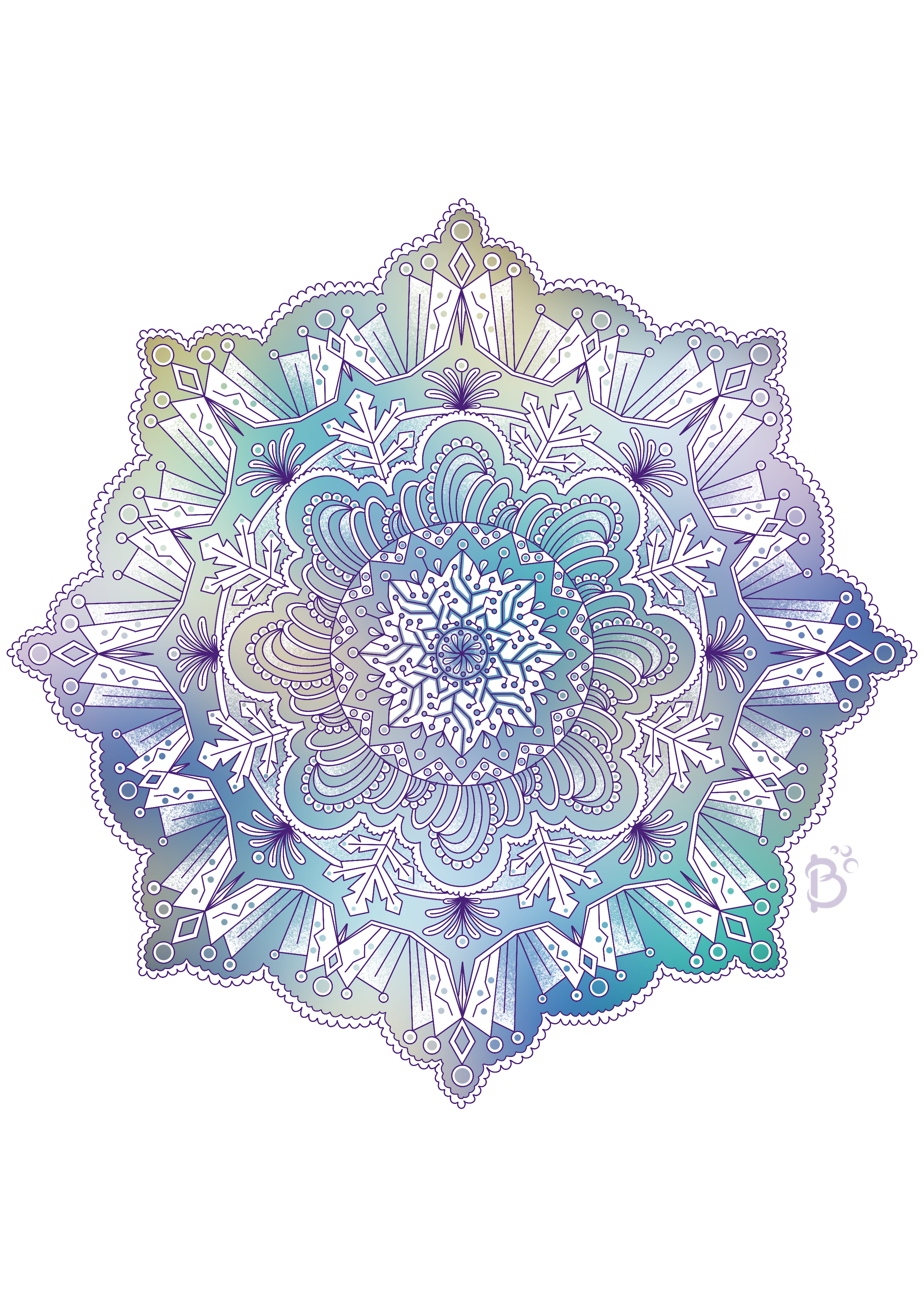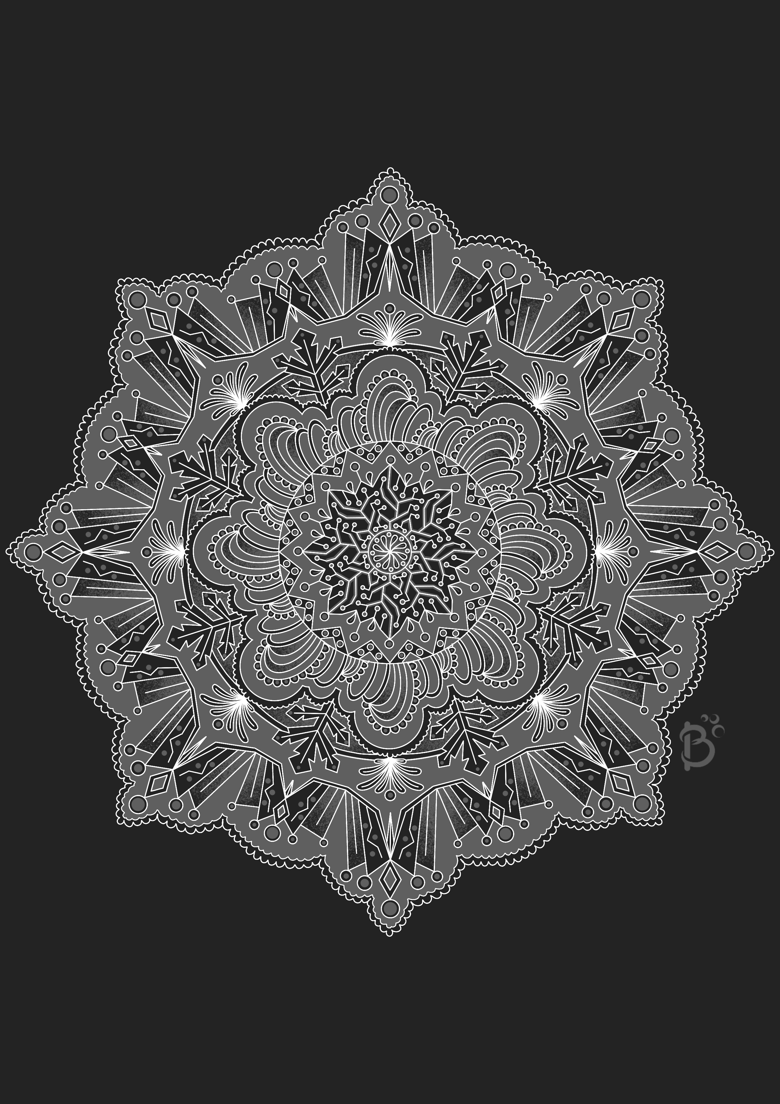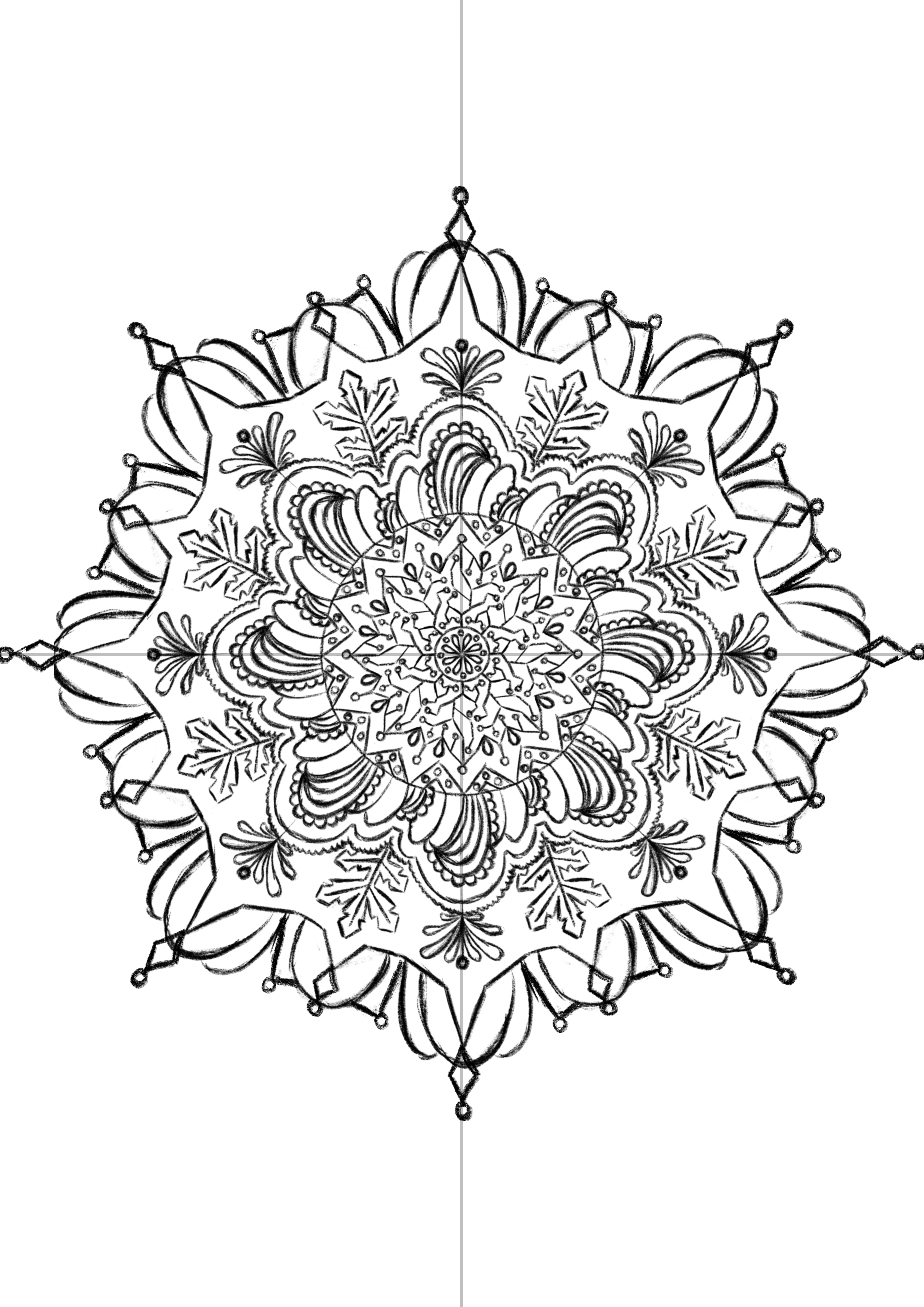 This is my idea for the Winter theme I decided to go with for this project. I began directly into Procreate and must admit that the process is quite different from drawing by hand. On the one hand, you can easily avoid mistakes and can save a lot of time and achieve better symmetry. However, the natural flow of the ideas is quite difficult as everything happens simultaneously and you don't have that time to develop your thoughts step by step. It has its pluses and minuses, so overall it depends on what mood you're in :D But it's definitely worth it to try both ways, it's a different but equally fun experience!