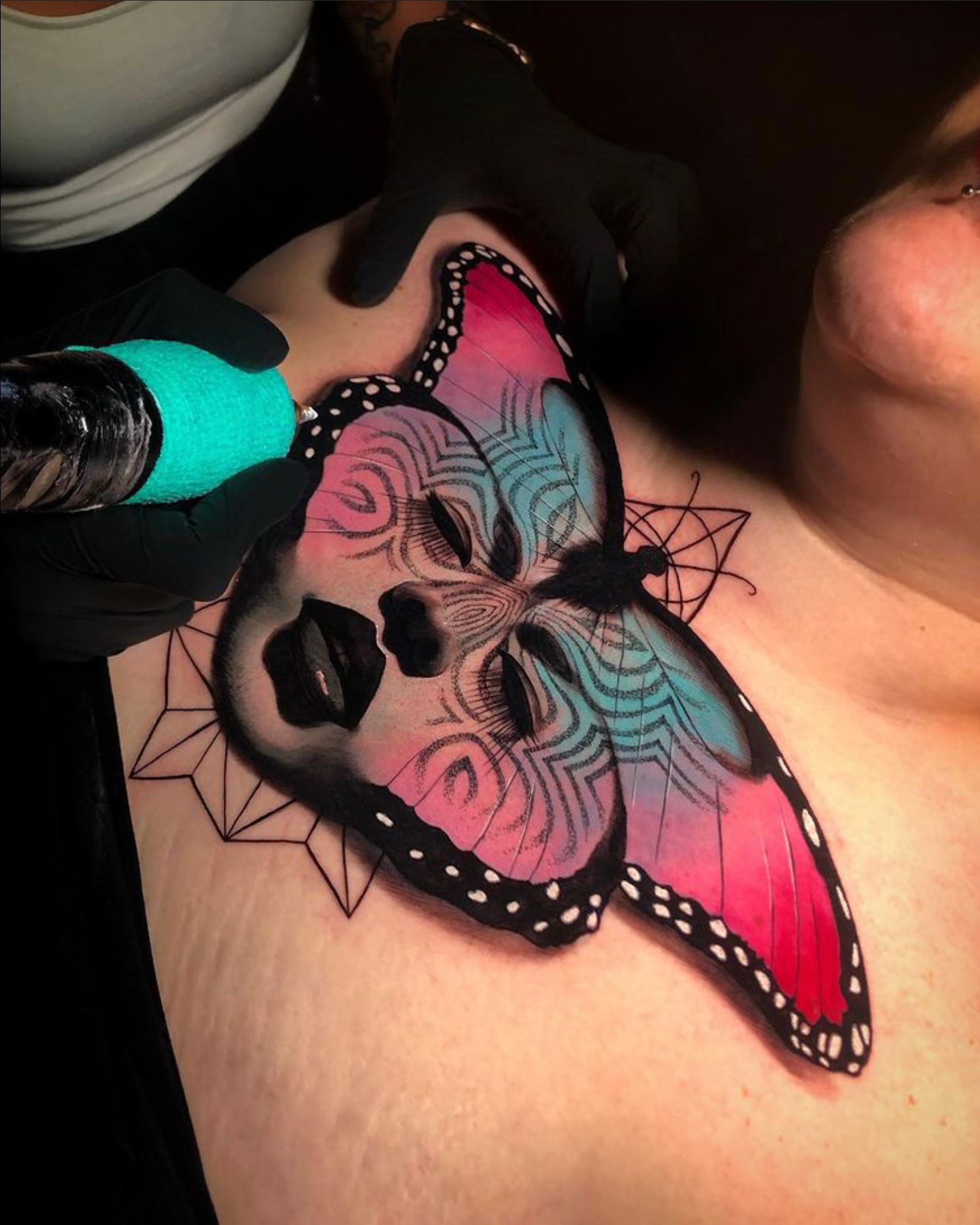 Mariposa en el pecho. 6h de trabajo. Realizado en 2022