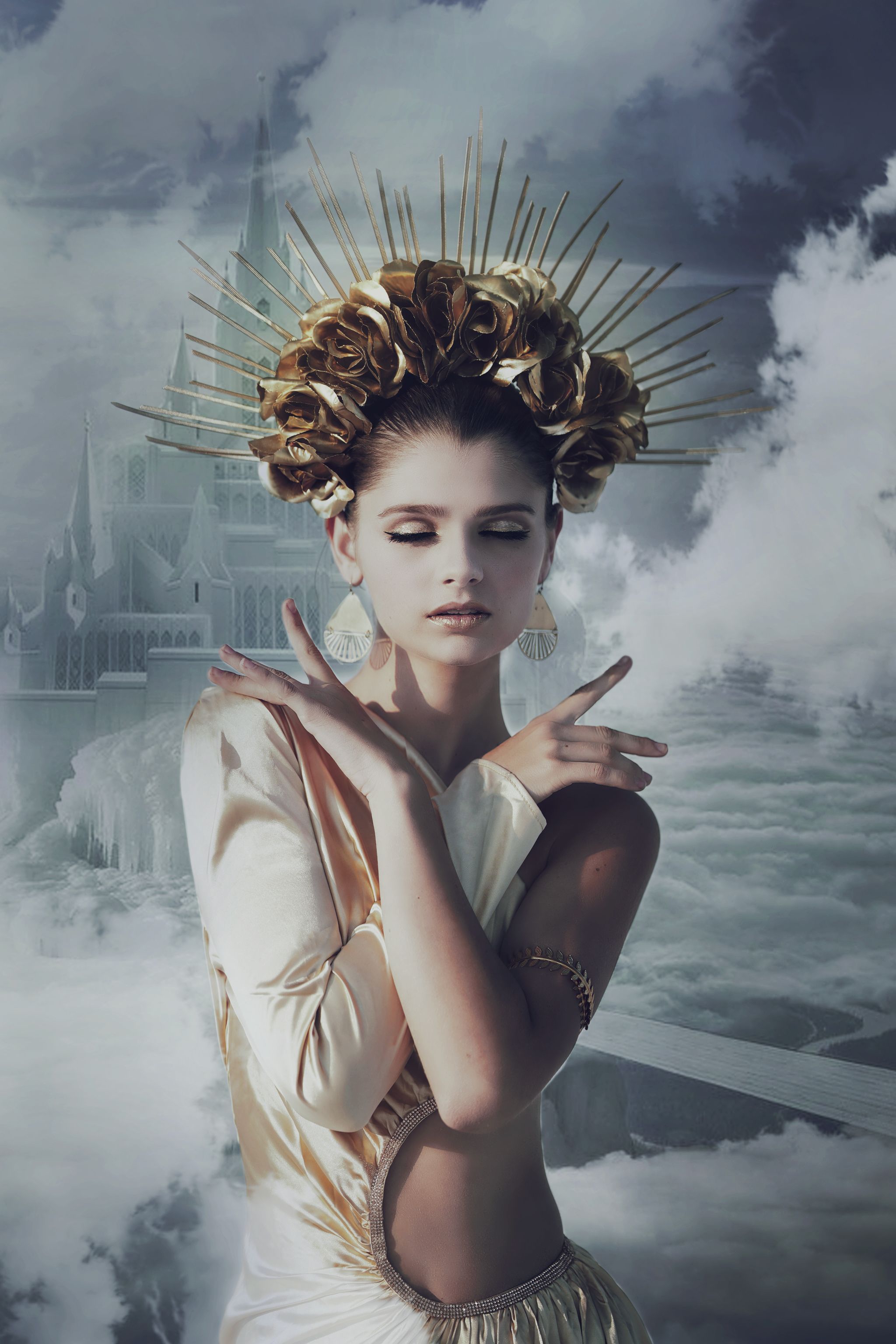 jenn_woo_photography). Usé un fondo de un castillo de Elena Dudina así como algunas nubes extra.