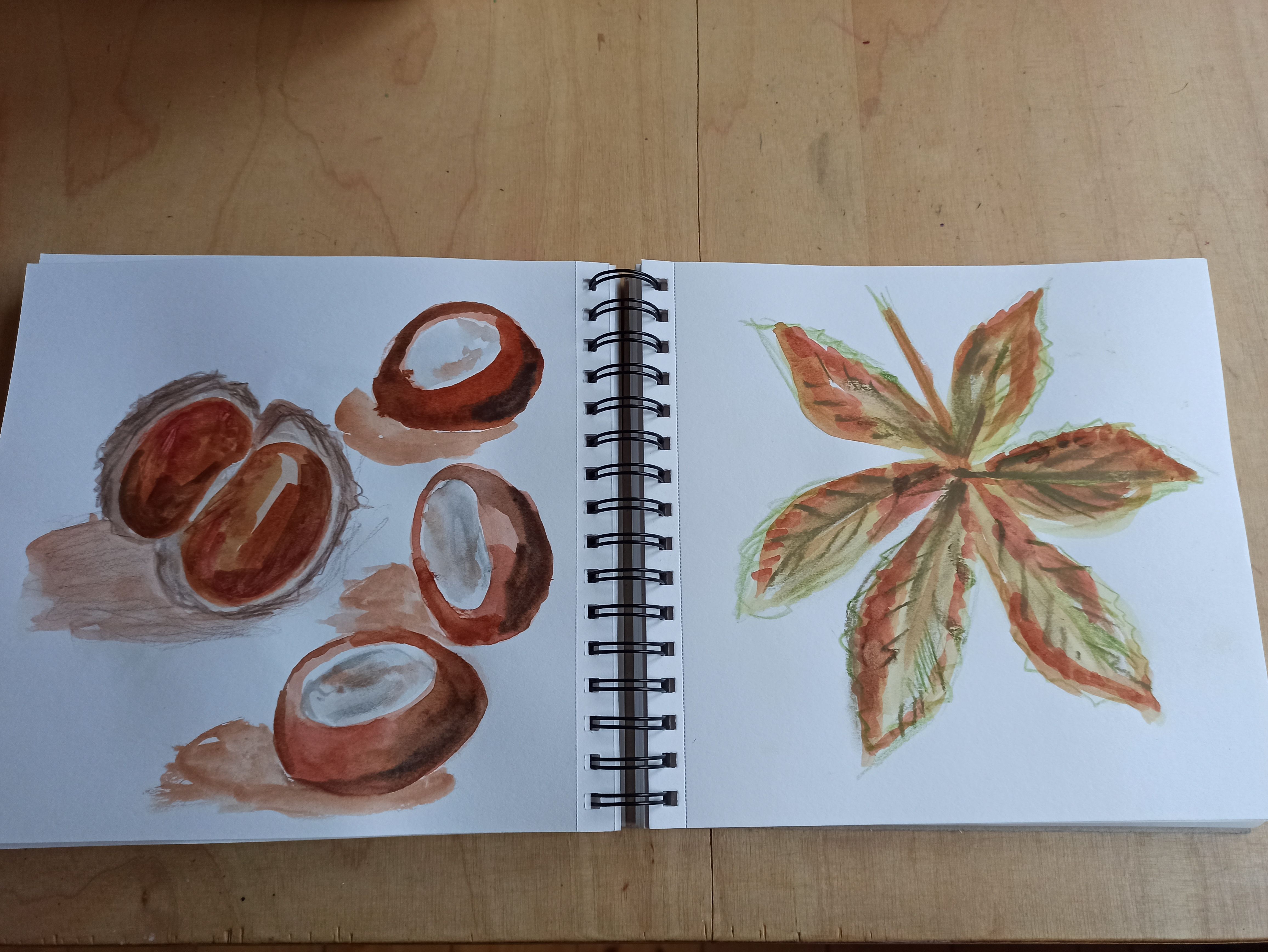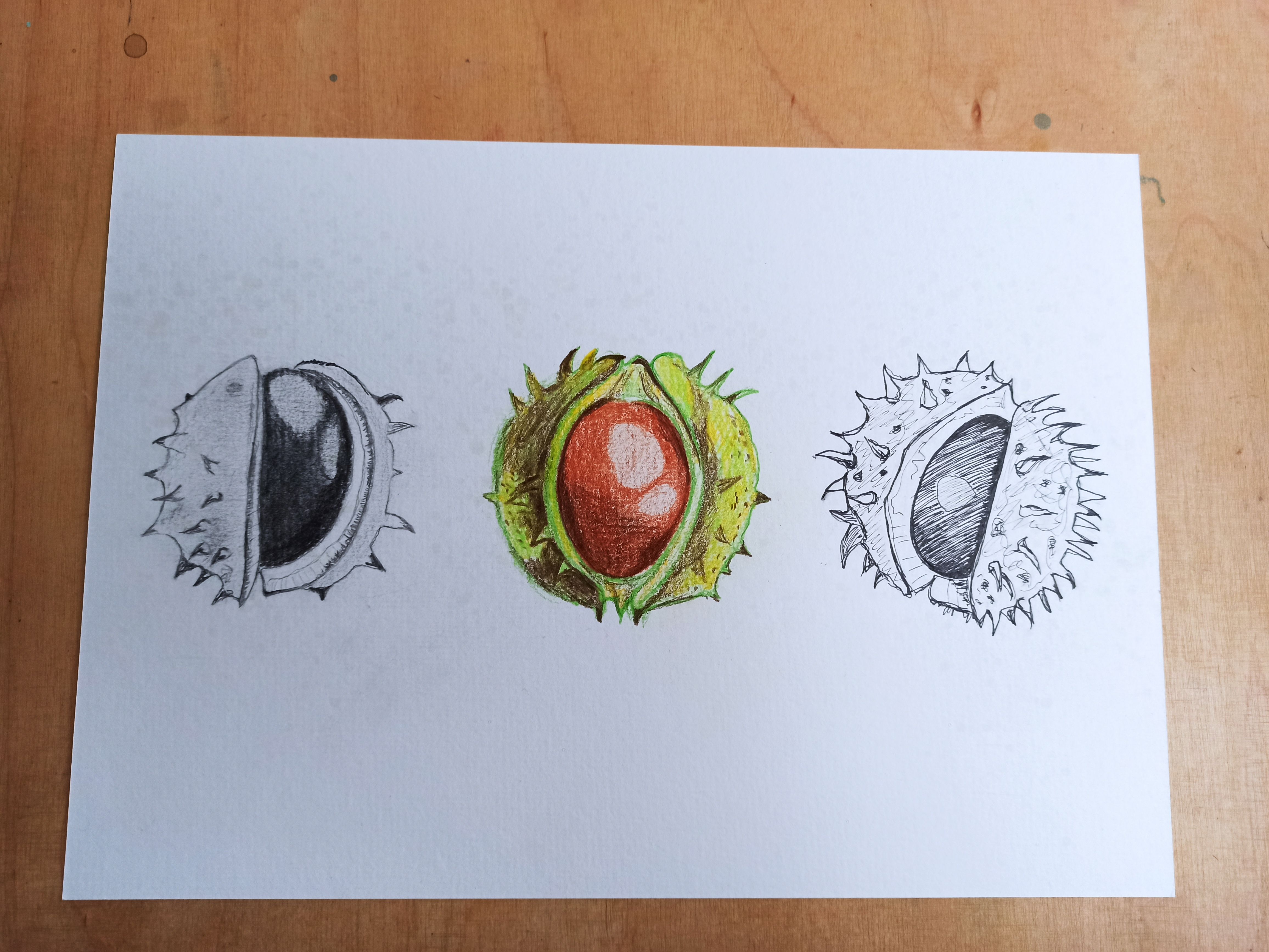 Ich glaube, ich habe mich noch nie so an einem Thema abgearbeitet, aber es hat sehr viel Spaß gemacht, obwohl ich jetzt in den nächsten Jahren wahrscheinlich keine Kastanie mehr zeichnen werde ...