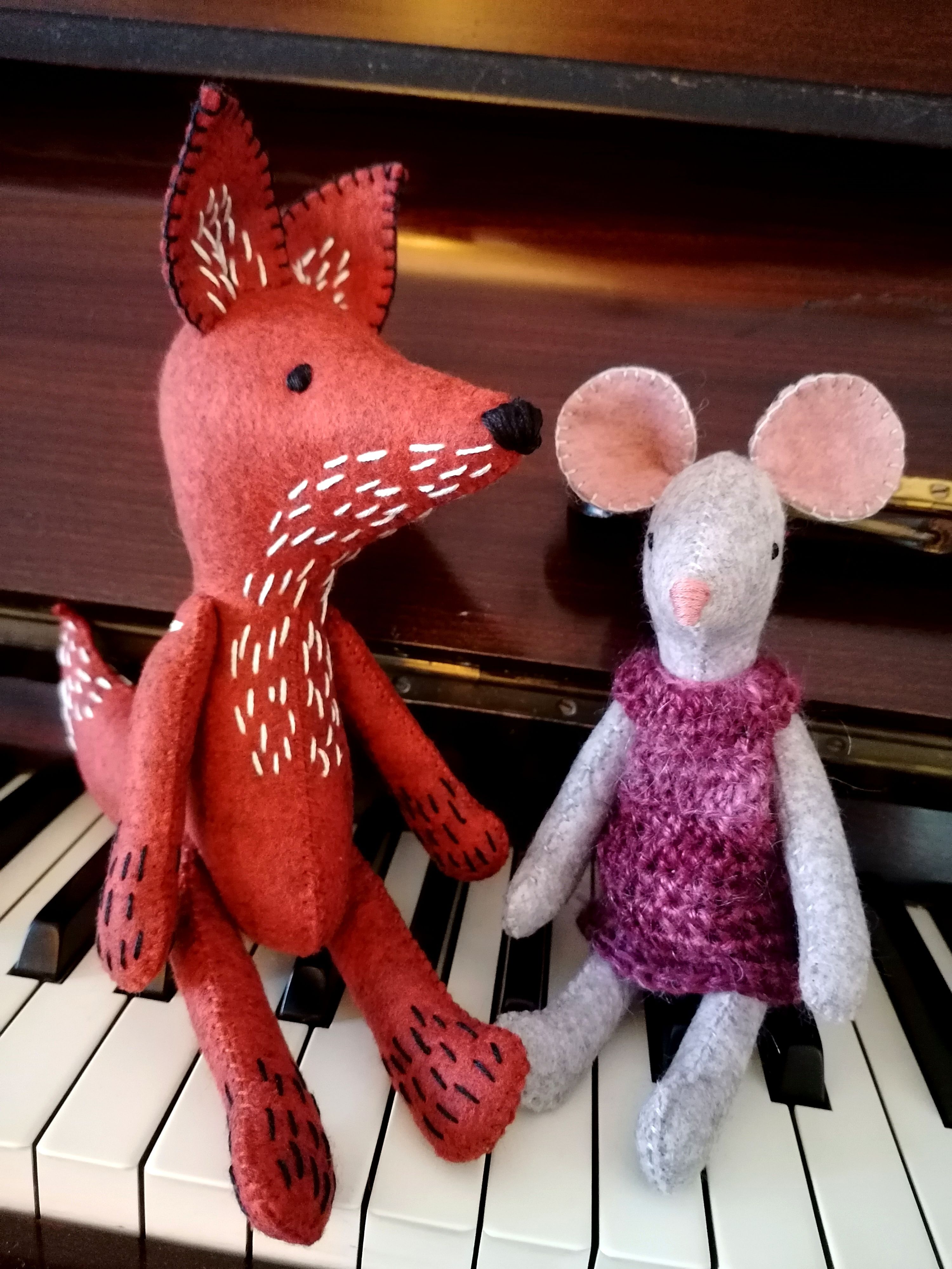 Mr Fox all finished in time for my daughters birthday (in the photo he is sitting with the little practice mouse I made to check how everything came together). Of course I can now see where to make changes, what needs exaggerating more and what needs scaling back, but I feel the course has prepared me for this.